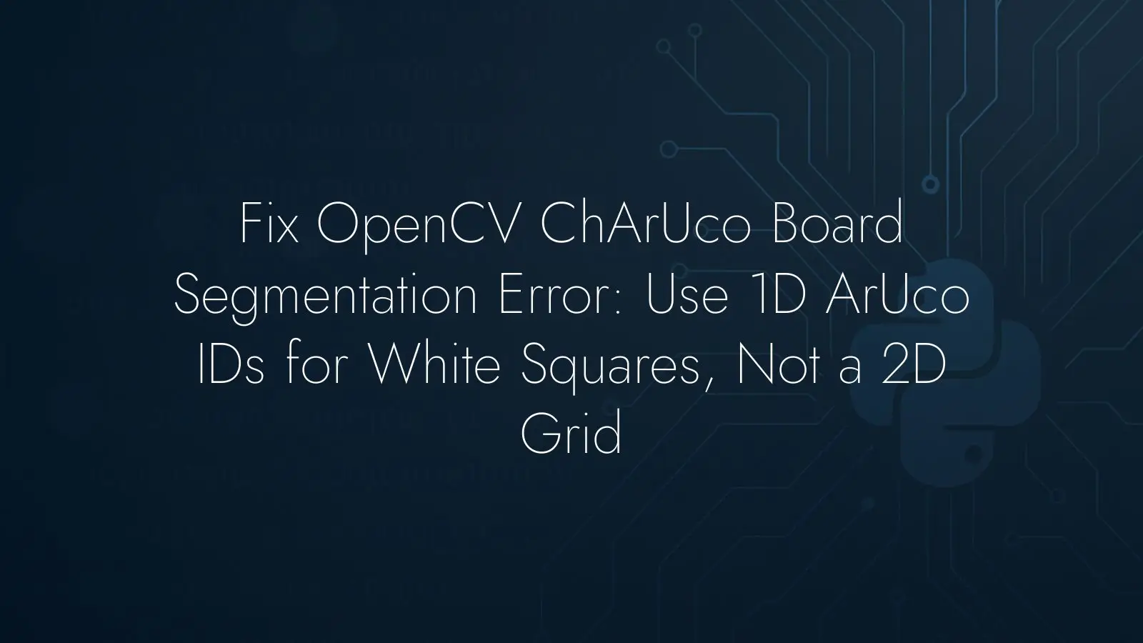 Learn why OpenCV ChArUco board creation crashes with a 2D id grid and how to fix it: use a 1D array of ArUco IDs for white squares, with count and checks.
