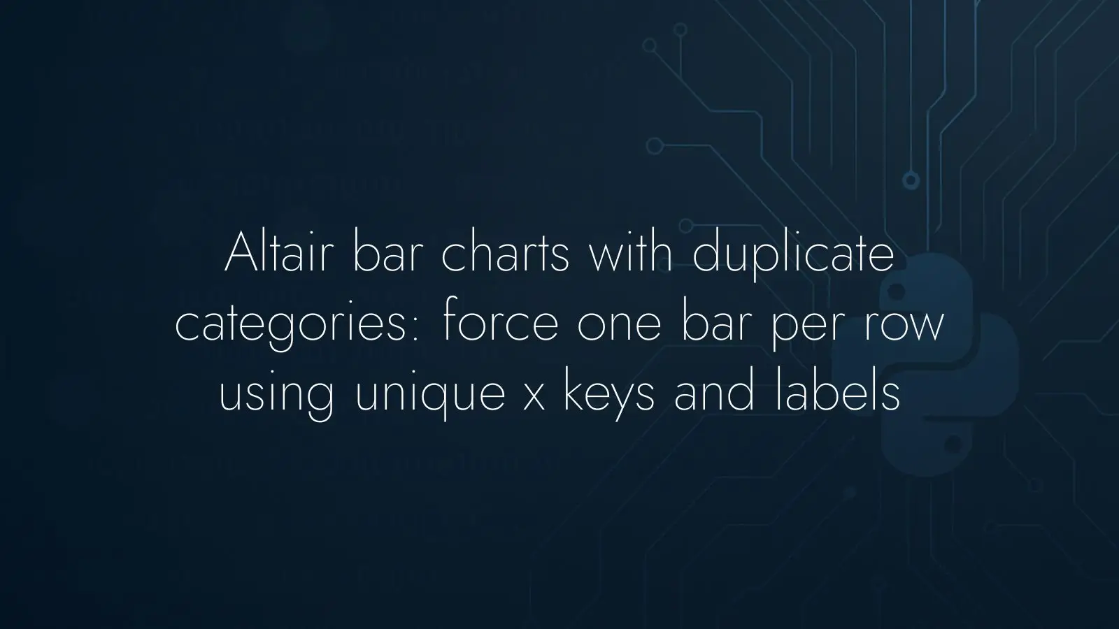 Altair groups rows that share the same category on the x-axis. If a field repeats, its y-values get added, and you end up with fewer bars than rows. When your source data intentionally contains duplicates and you want one bar per row, you need a unique x-channel key while still showing the original label.