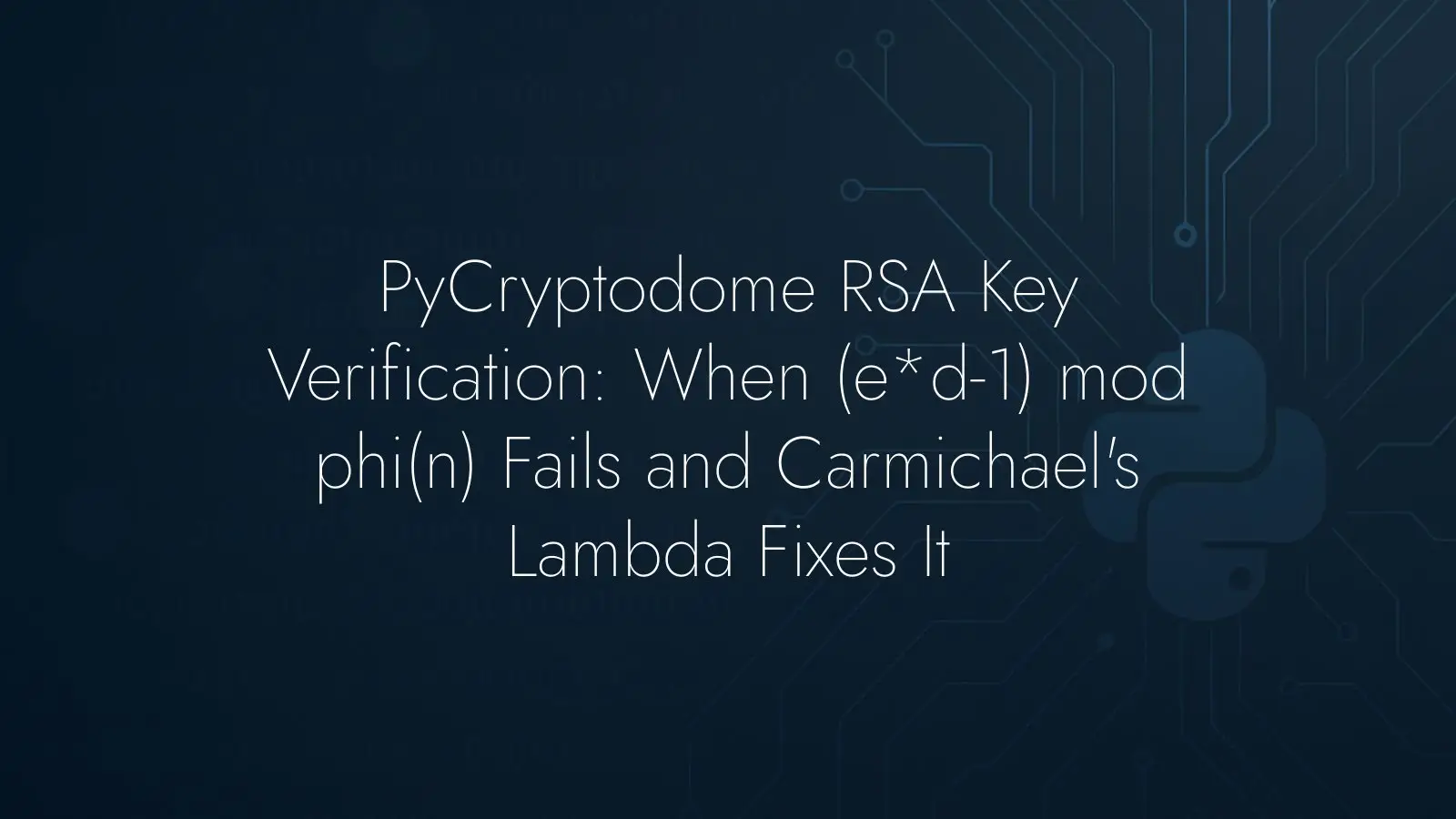 If you verify RSA keys from PyCryptodome, don’t expect (e · d − 1) mod (p − 1)(q − 1) to be zero for every key. Instead, use lcm(p − 1, q − 1) as the modulus for the check. This matches how the library defines the private exponent, avoids spurious assertion failures, and reflects a common practice that slightly reduces the size of d without changing the correctness of RSA.