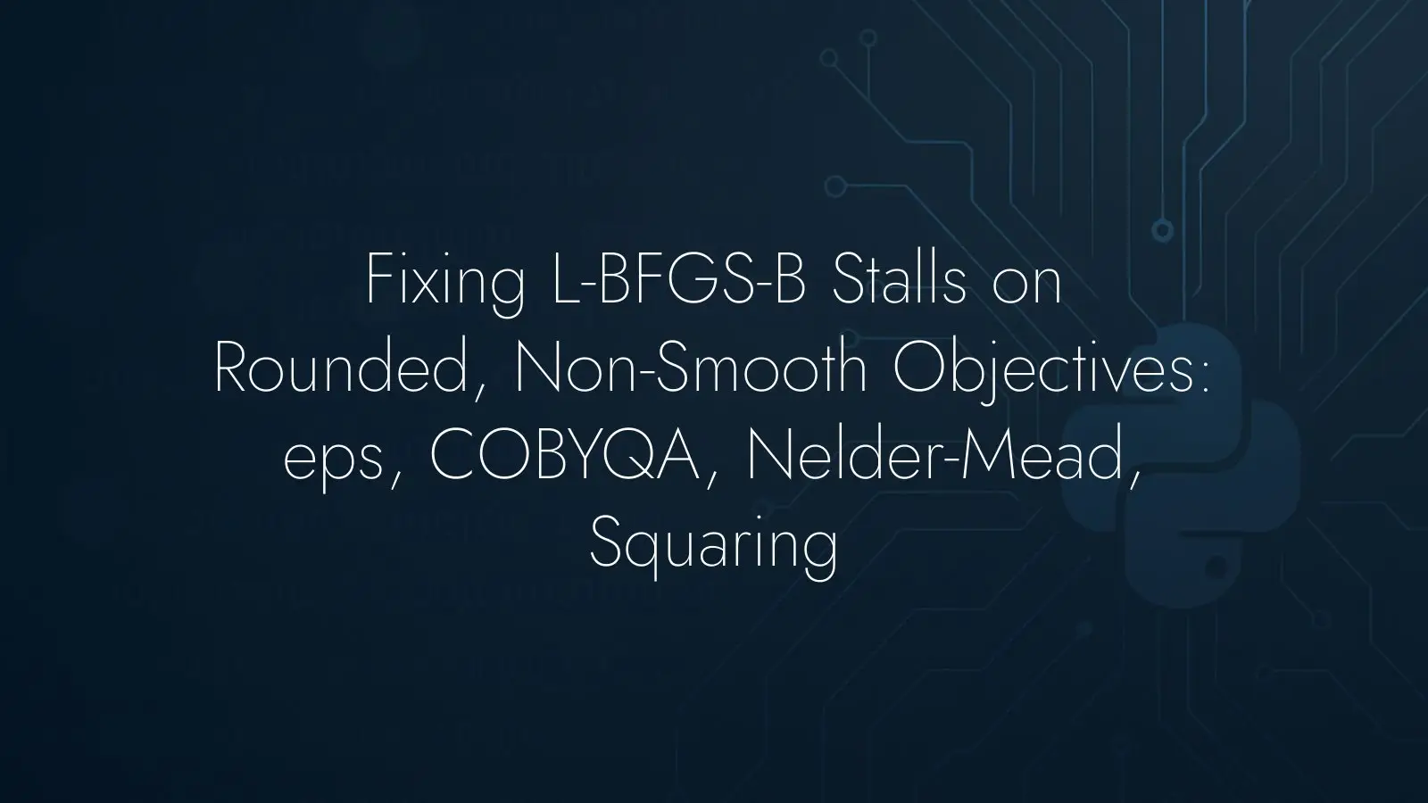 If an optimizer halts right away with a projected gradient of zero, suspect rounding or non-smoothness. For L-BFGS-B, increase eps to get a usable finite-difference gradient. When gradients are unreliable, try derivative-free strategies like COBYQA or Nelder-Mead, tuning initial_tr_radius or the initial simplex when needed. And if the objective behaves like abs(), minimize its square to improve curvature for line search and quadratic models. These small changes are often enough to turn a stalled run into a reliable search for the true minimum.