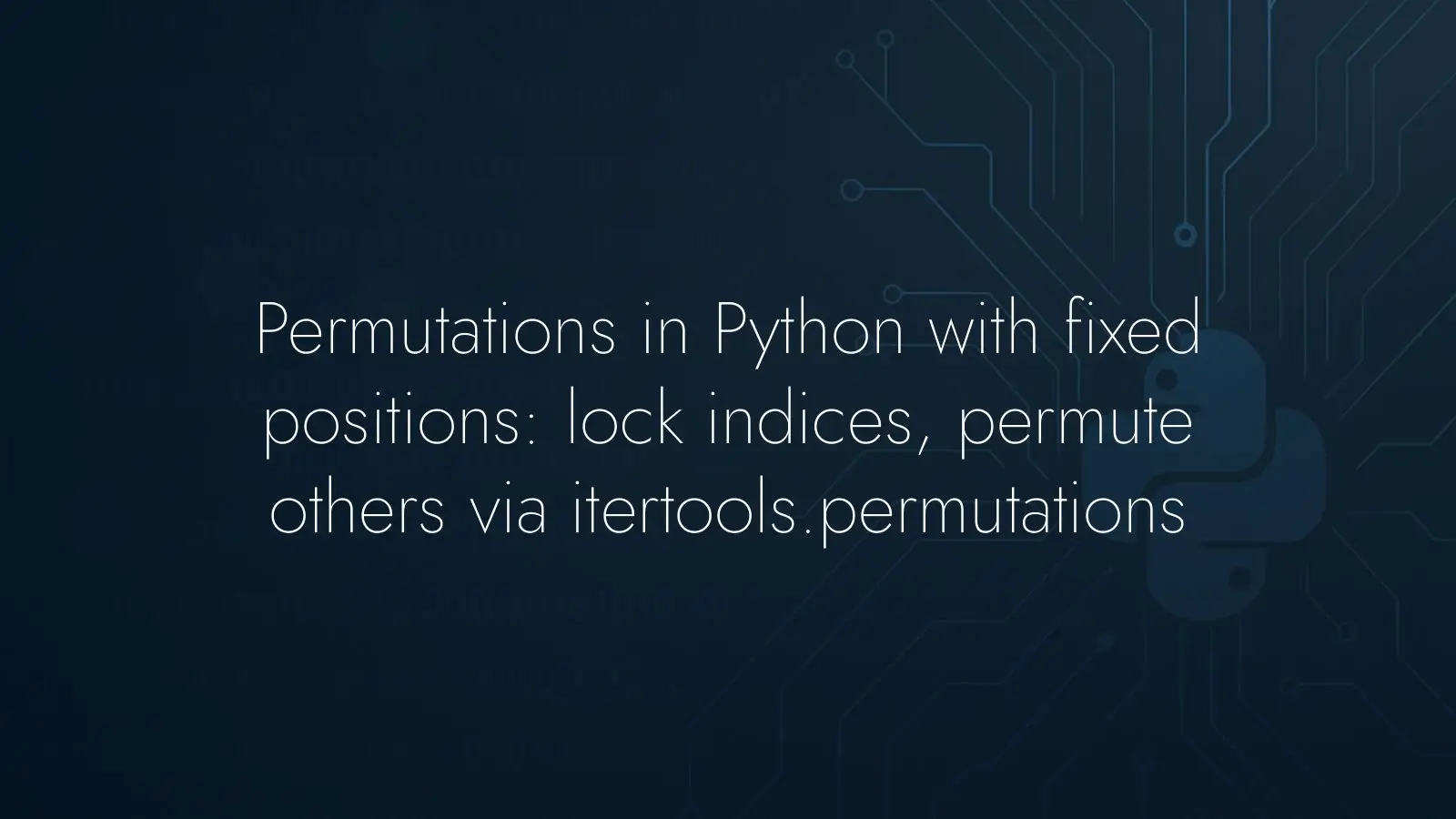 Generating permutations is straightforward in Python, but real-world tasks often come with constraints: some positions must stay fixed while the rest are permuted. This guide shows how to handle a single fixed index and then generalize the approach to multiple fixed indices using itertools.permutations.