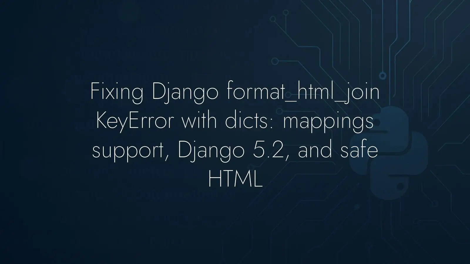 If you’re passing dicts to format_html_join() and see KeyError on a placeholder name, check your Django version first. On 5.2 or newer, iterable of mappings is supported and your list of dicts will work as intended. If you’re on an older release, either introduce a tiny compatibility wrapper that unpacks mappings as keyword args, or map your dicts to positional tuples and switch the template to positional placeholders. Each approach keeps the logic clear and the output safe.