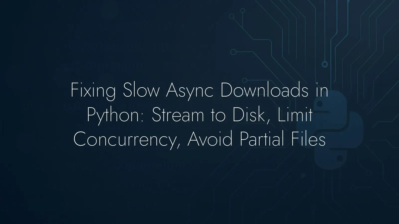 Diagnose and fix slow Python asyncio downloads: stream large files to disk, limit concurrency with semaphores, and handle errors. For aiohttp, httpx, threads.