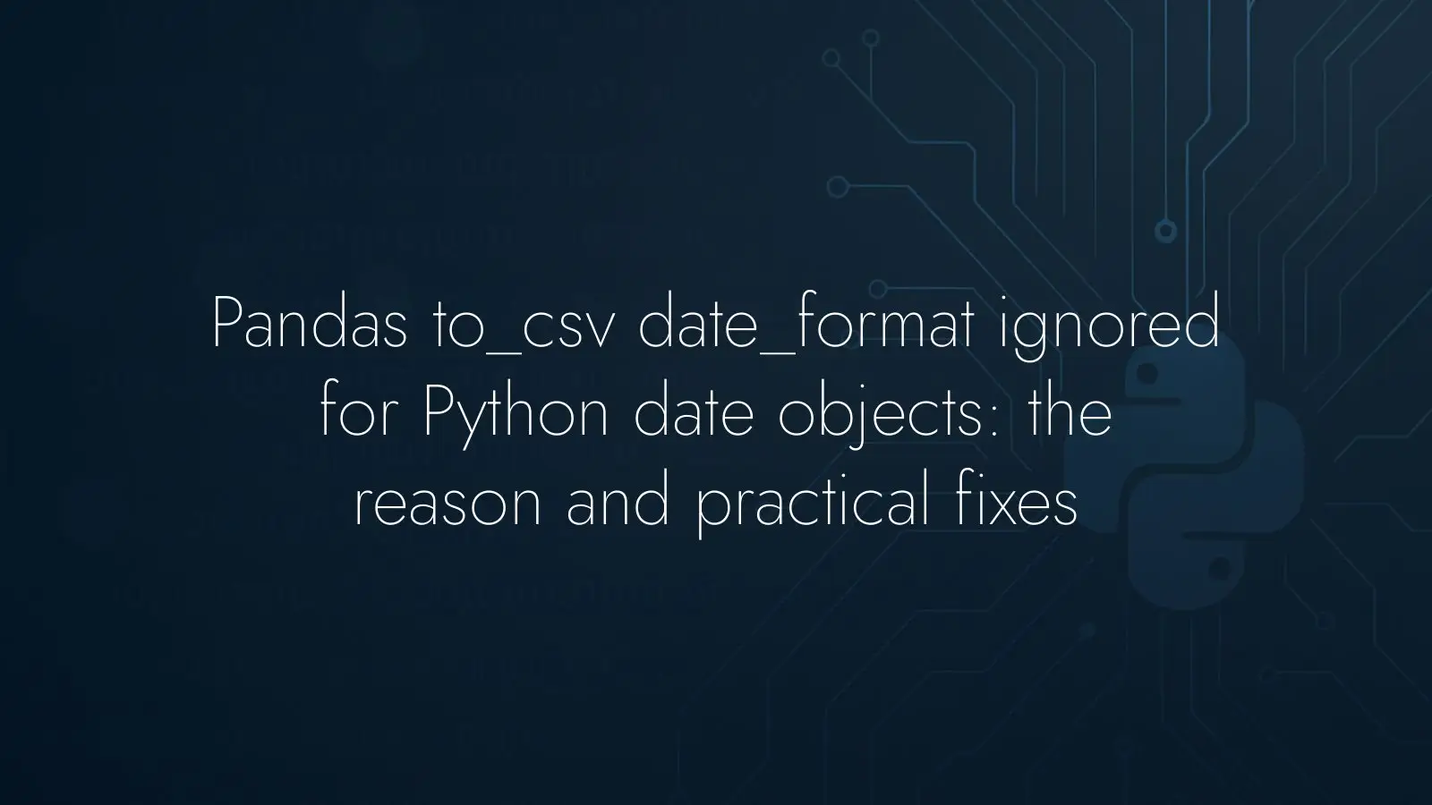 Exporting dates from pandas to CSV and expecting date_format to kick in can be disappointing when the data is made of pure Python date objects. The formatter silently does nothing, and you end up with ISO-like dates. Here is why this happens and how to fix it without changing your data pipeline semantics.