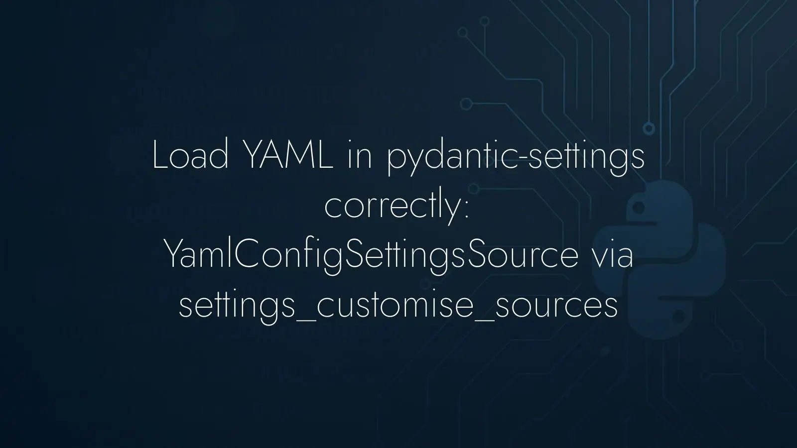 Reading configuration from YAML with pydantic-settings can look deceptively straightforward thanks to yaml_file and yaml_config_section in model_config. Yet simply setting those options does not make BaseSettings load YAML, which often surfaces as a ValidationError about missing fields. Below is a concise walkthrough of why that happens and how to wire YAML properly using the documented customization hook.