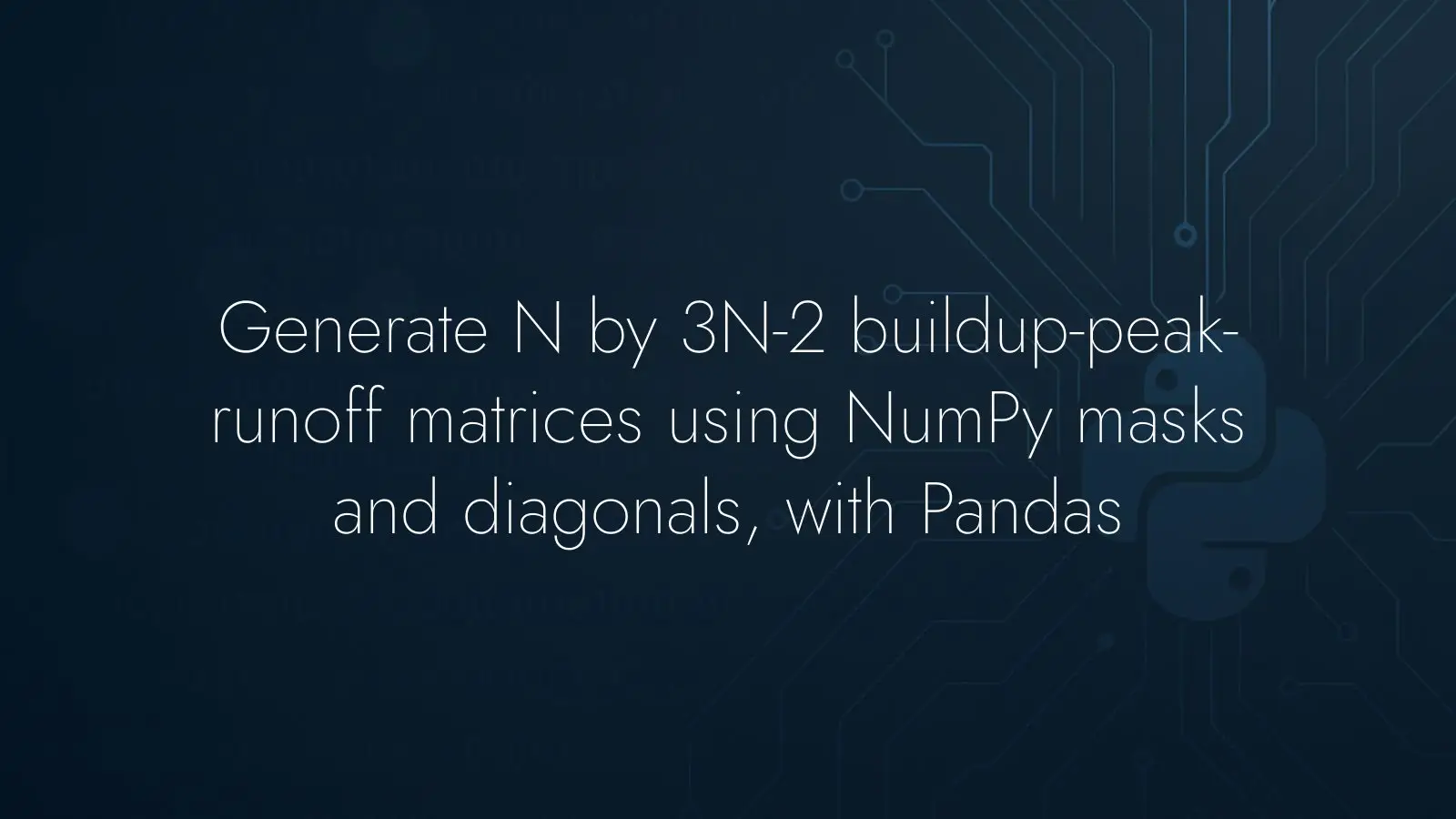 Learn how to build N by 3N-2 buildup-peak-runoff matrices using NumPy masks and diagonals, then export to a Pandas DataFrame. Includes code and explanation.