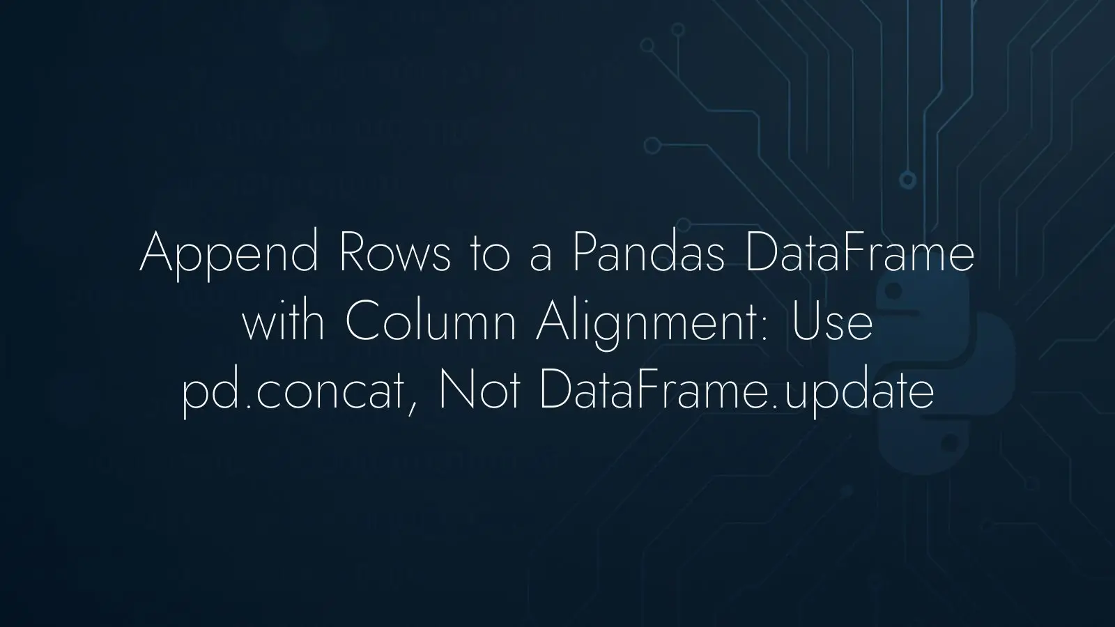 Append rows from a second Pandas DataFrame with proper column alignment using pd.concat, not DataFrame.update. Keep all rows and avoid overwrites safely.