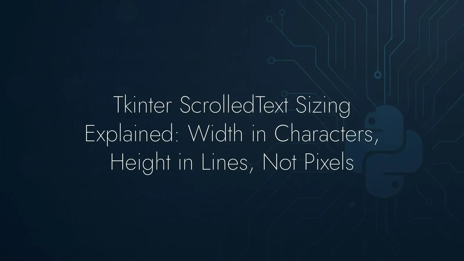 Learn why Tkinter scrolledtext.ScrolledText uses character and line units, not pixels, for width and height. Get predictable near-square sizing via font metrics.