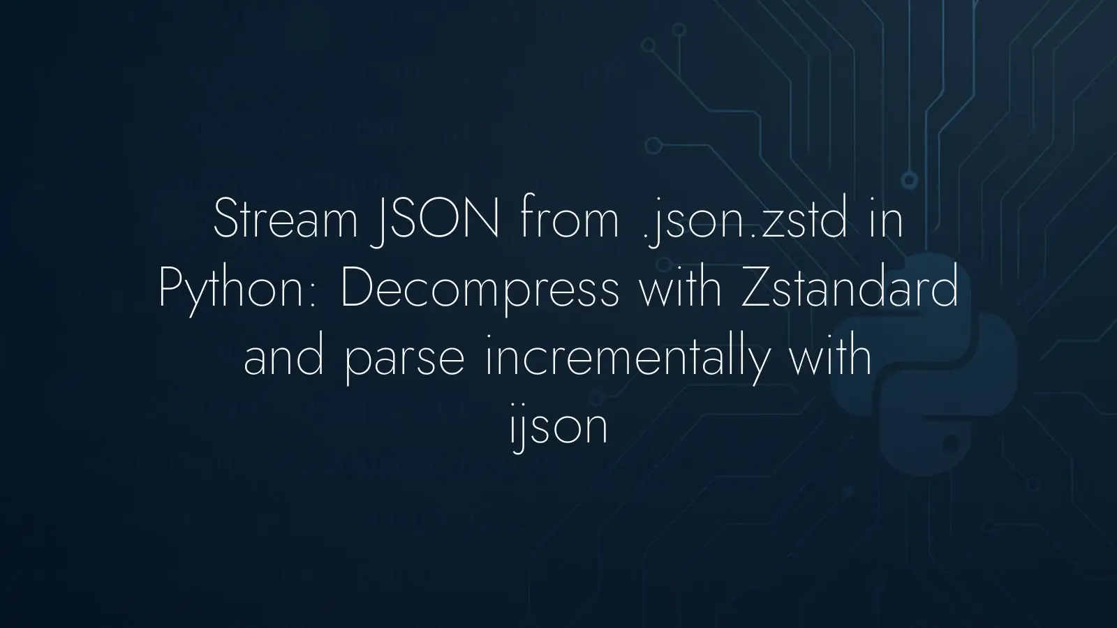If you have a big .json.zstd and the JSON isn’t newline-delimited, don’t iterate lines and don’t try to load the whole file. Open a Zstandard stream and hand it to ijson.items with an empty path. You will get the JSON items directly from the compressed stream while staying within constant memory. If you need chunking with pandas, make sure your data is multiline JSON; otherwise, stick with a streaming parser that works with file-like objects.