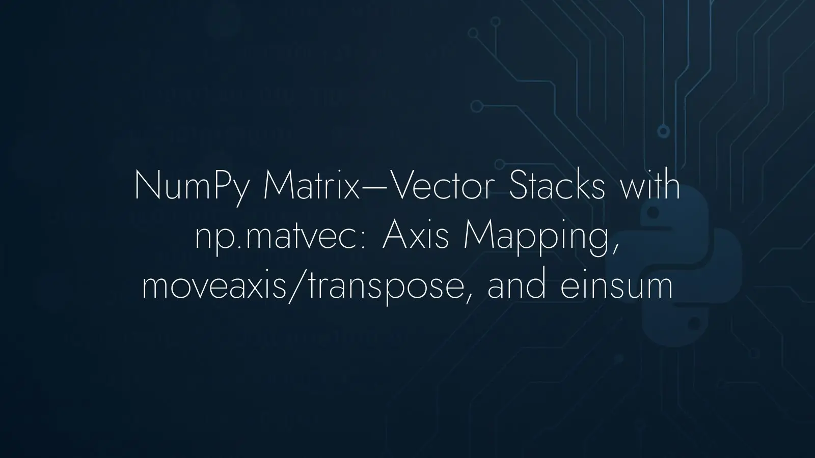 Learn to apply a 3×2 matrix to a 2×4×5 vector stack in NumPy with np.matvec. Use axis mapping, moveaxis/transpose, or einsum for efficient, reliable results.