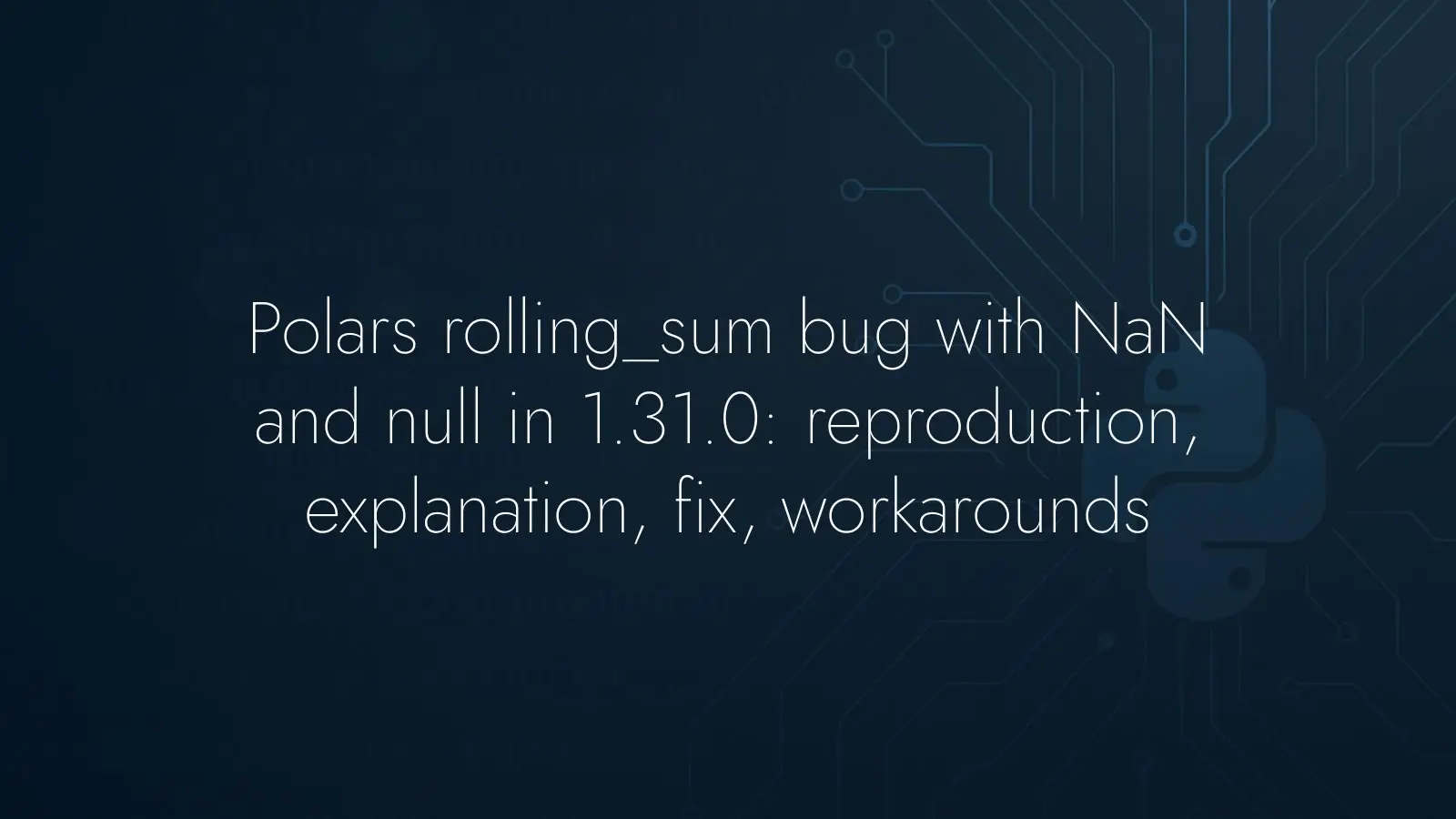 Polars 1.31.0 rolling_sum bug with mixed NaN and null: minimal repro, expected vs actual output, rolling_map baseline, and the fix in the next release.