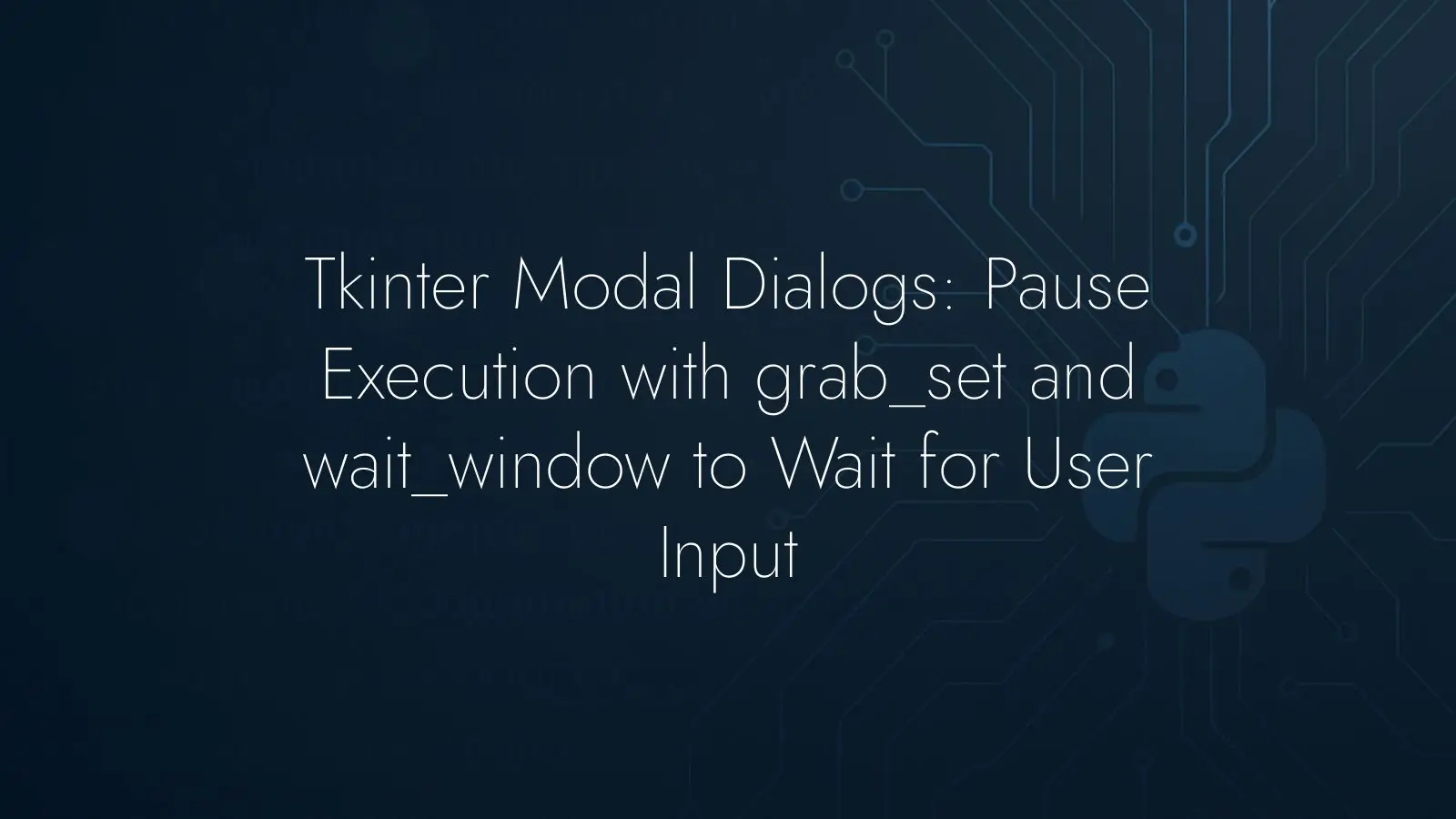 Learn how to make a Tkinter Toplevel modal with grab_set and wait_window so your Python GUI waits for user input before continuing. Includes code. Examples.