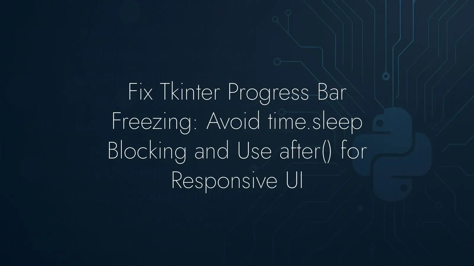 Learn why Tkinter progress bars freeze when time.sleep blocks the event loop, and fix it with after(). Code shows responsive UI updates without hangs.