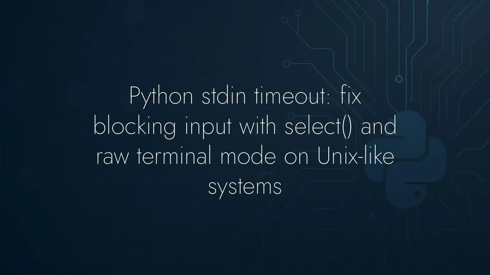 Learn why os.read blocks and how to implement a reliable stdin timeout in Python using select, raw terminal mode, and safe cleanup on Unix-like systems.