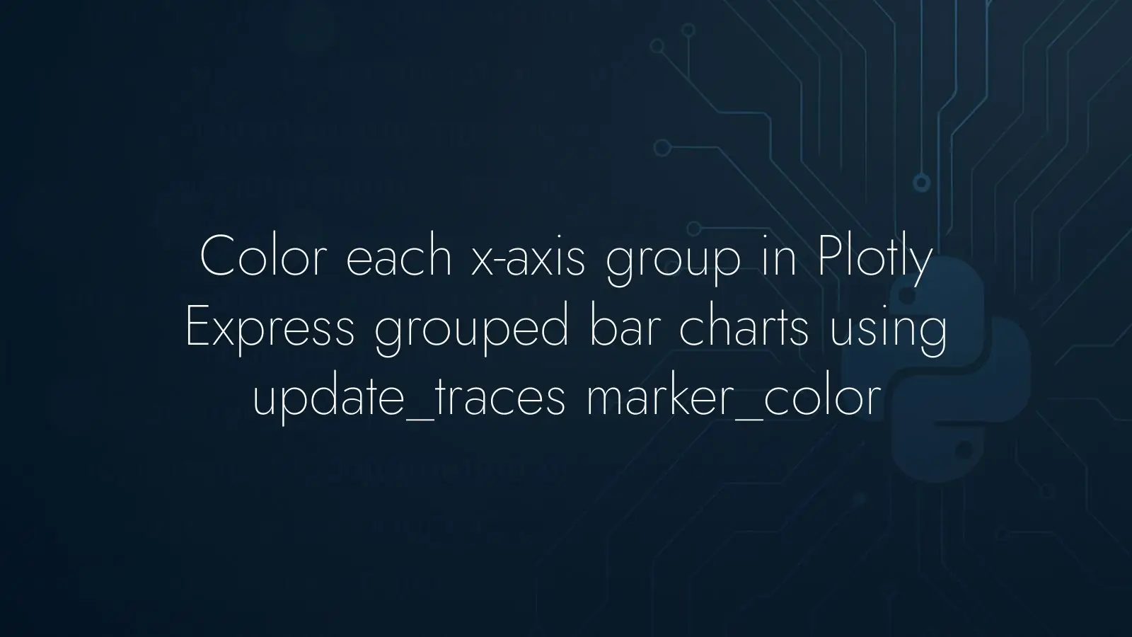 When building grouped bar charts in Plotly Express from a wide-form DataFrame, it’s common to want each x-axis group to share a single color, rather than coloring by series. A straightforward approach like setting a color palette often changes the color of entire traces (columns) across all groups, which isn’t what you want if your goal is “one color per group.”
