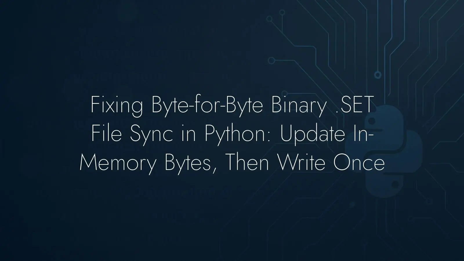 Learn to sync binary .SET files byte-for-byte in Python: update in memory, then write once and truncate. Avoid in-loop writes and offset issues for stable sync