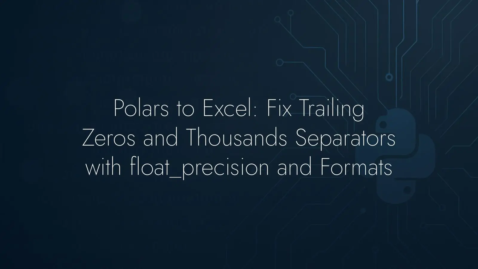 Treat Excel rendering as a formatting concern and make it explicit at export time. Use float_precision in Polars to control trailing digits. When the worksheet must avoid thousands separators or adhere to a strict display standard, rely on number formats through dtype_formats or, if you need a smoother path right now, prefer pandas.to_excel or switch to CSV via polars.write_csv. Ensure the pipeline preserves numeric dtypes all the way to the file, especially around any steps that could accidentally turn numbers into text. Making these decisions deliberately will save you from last-minute surprises in the file your users actually open.