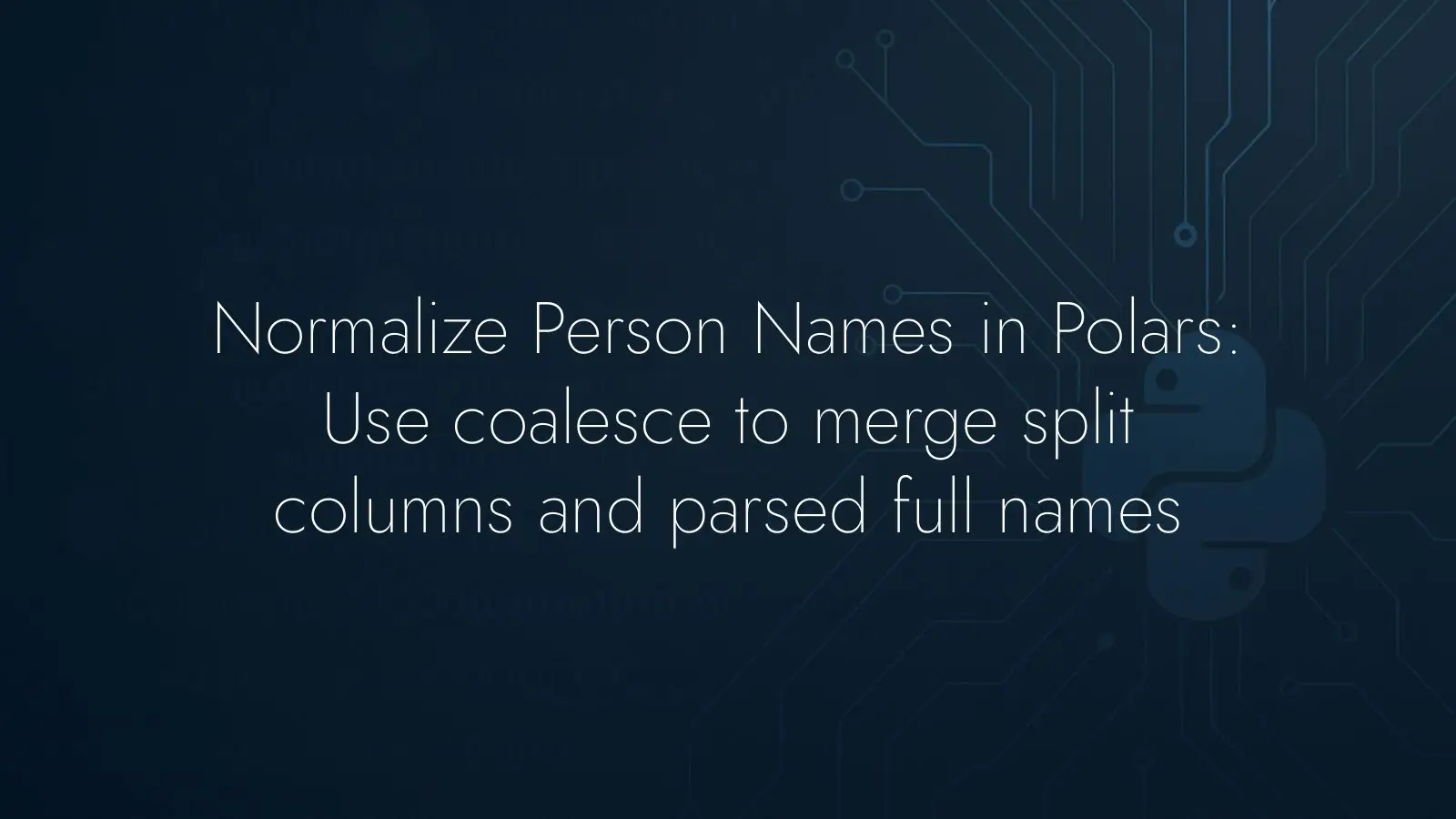 Learn how to normalize person names in Polars using coalesce: prefer existing split columns and fall back to parsing 'Last, First' strings; fewer conditionals.