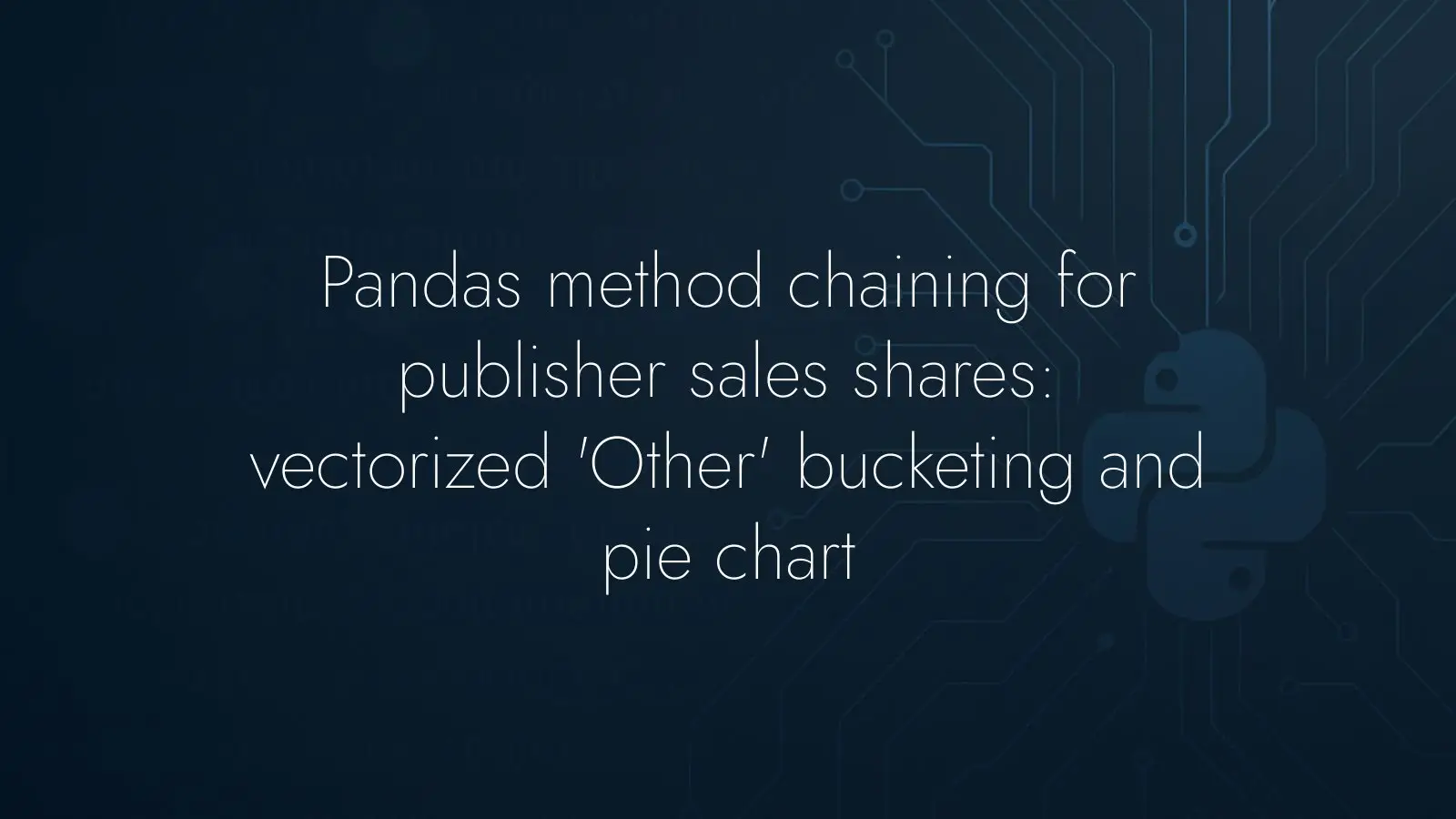 Learn to replace loop-heavy pandas code with a vectorized pipeline: groupby, assign, mask, bucket small publishers as 'Other', then plot sales share as a pie.