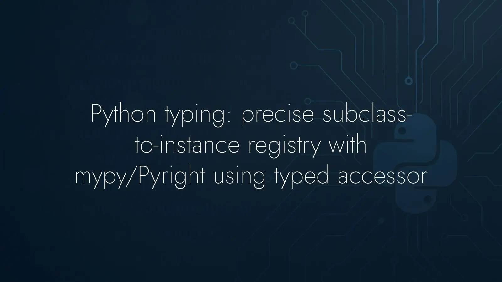 Learn how to type a subclass-to-instance registry in Python. Use a typed accessor, generics and a safe cast that satisfies mypy and Pyright for precise APIs.