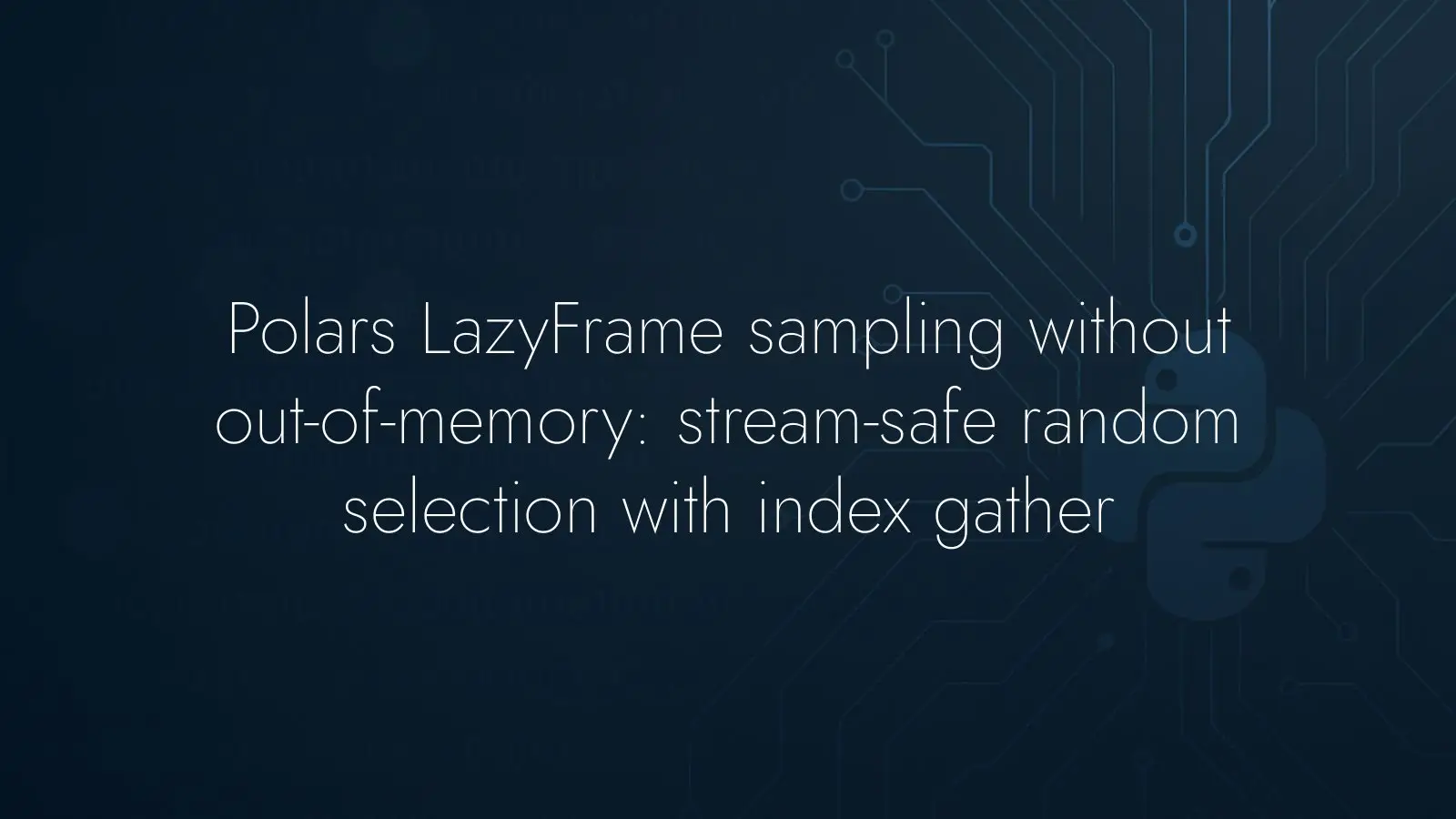 If sampling a large column in Polars LazyFrame leads to out-of-memory errors, avoid sample and switch to an index-based selection: compute the row count, choose random row positions, and gather those rows. This keeps the workflow closer to the streaming execution model and reduces the chance of materializing the full, heavy column. Test this approach in your environment, especially on the wide column that caused the crash, and keep your sampling logic aligned with operations that can be planned efficiently by the engine.