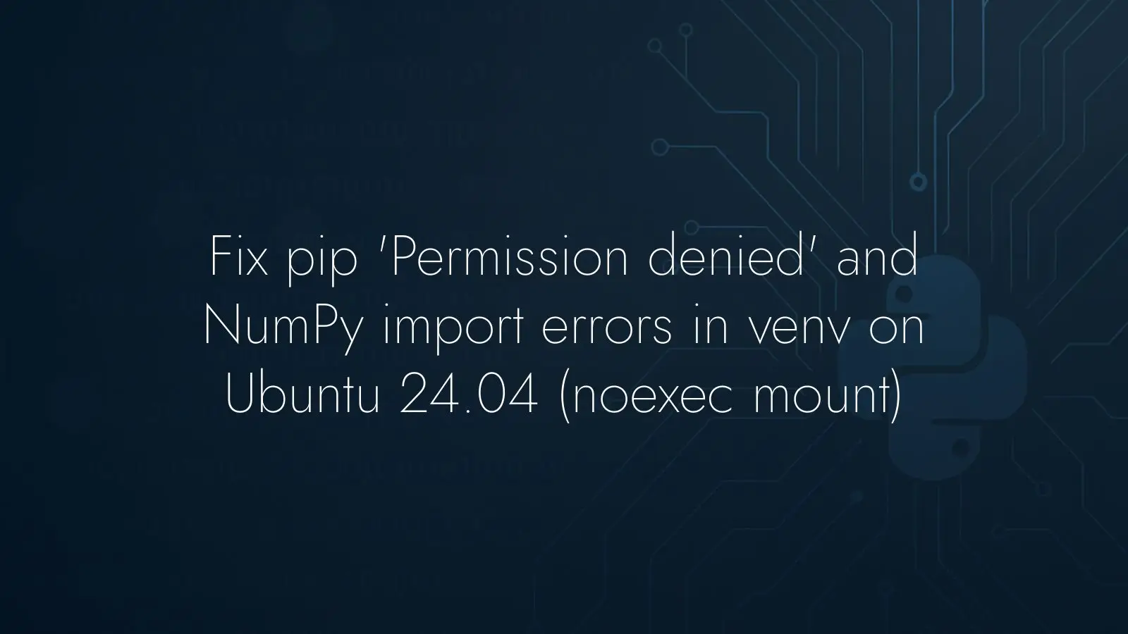 Learn why pip shows Permission denied and NumPy fails to import in a Python 3.12 venv on Ubuntu 24.04: noexec mount. Fix via python -m pip or remount with exec.