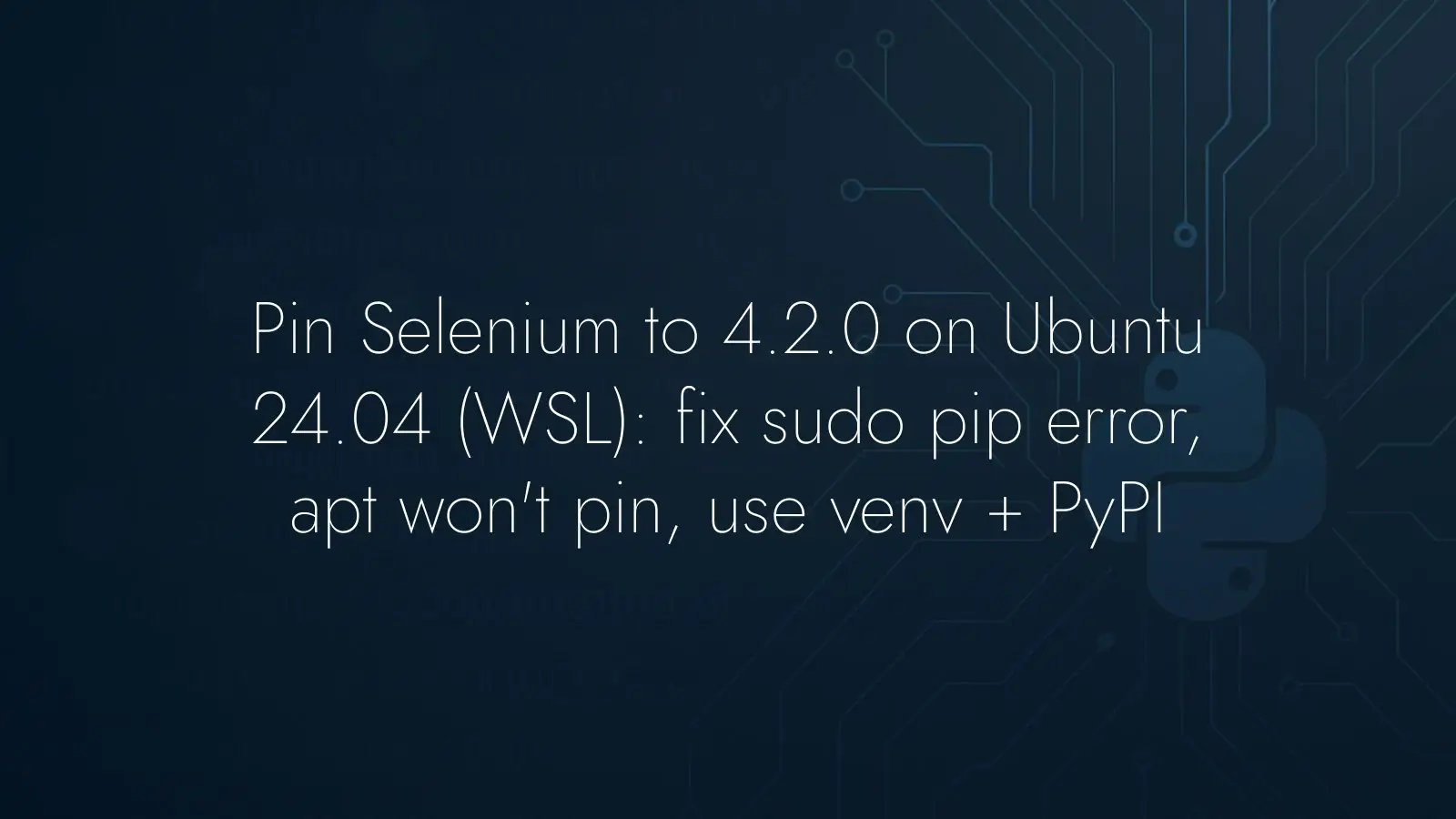 Pinning Selenium to an exact version on Ubuntu 24.04 under WSL can be unexpectedly tricky. A system-wide install with sudo pip is blocked with an externally managed environment error, and apt won’t give you an arbitrary version on demand. Here is a clean, reliable way to get Selenium 4.2.0 (or 4.2.1) without fighting the OS.
