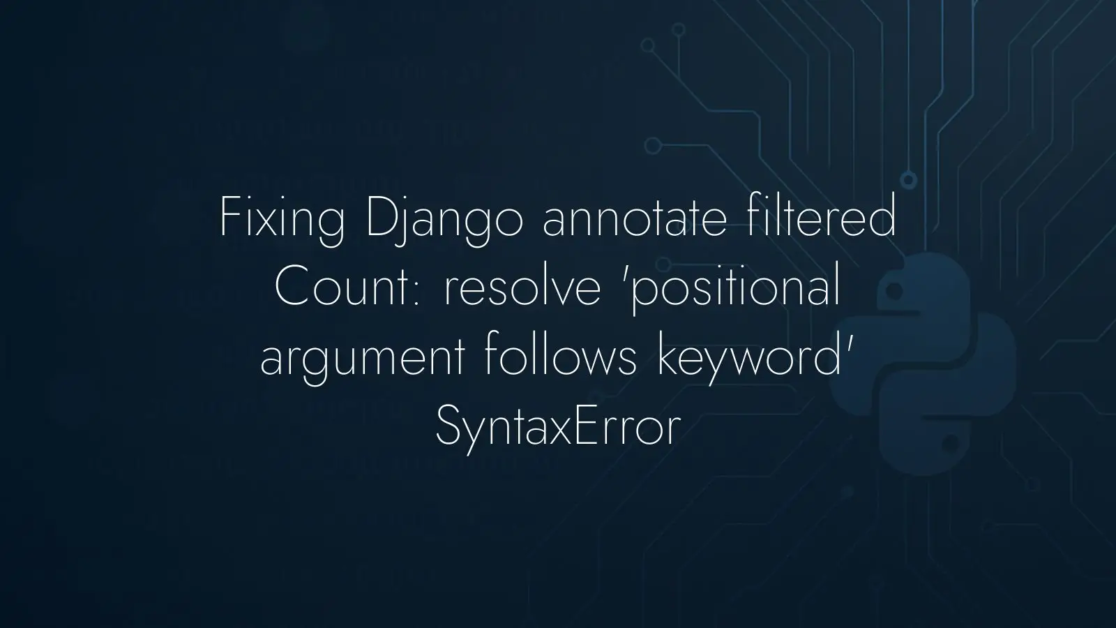 Learn why Django ORM annotate with filtered Count can throw 'positional argument follows keyword' and how to fix it by reordering arguments, using Q filters.