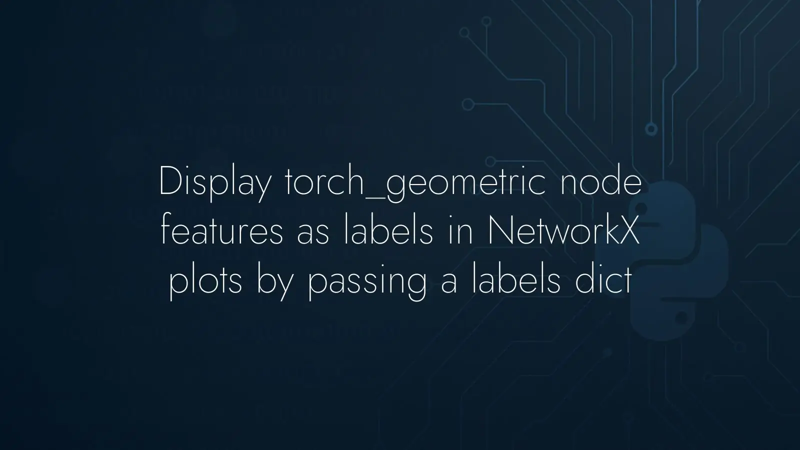 When plotting with NetworkX, node ids are not the same as node features. If you want features on the plot, build a dictionary from node id to label text and feed it to labels=... or draw_networkx_labels. Convert tensor data to Python types first, cast to int if you don’t want decimal points, and format strings for multi-line or enriched labels as needed. If you convert from torch_geometric to a NetworkX graph, the same principle applies: create and pass labels explicitly.