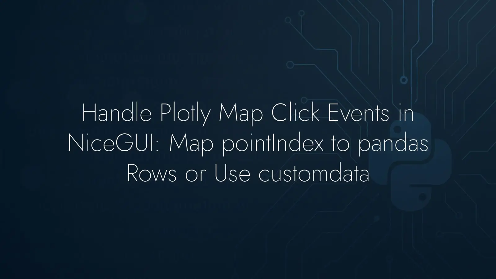 Inspect the event payload once and wire your handler to pointIndex to retrieve the row with iloc. If your use case benefits from pushing attributes to the client, attach them via customdata and read them straight from e.args in the callback. Both patterns are simple, robust, and make your NiceGUI + Plotly maps feel responsive and informative.