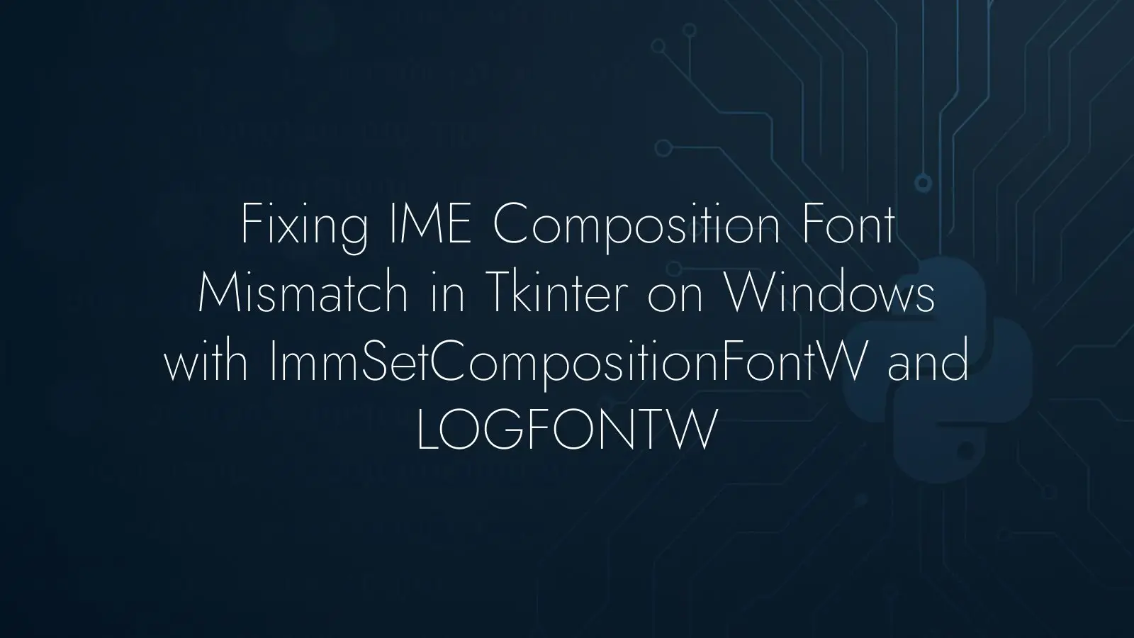 If you rely on consistent text rendering in inputs that accept IME-based input, wire this up early in your application and convert your Tkinter font to LOGFONTW carefully. That gives you the same family and size for both submitted text and the IME preview, aligning the visual language across the whole editor.