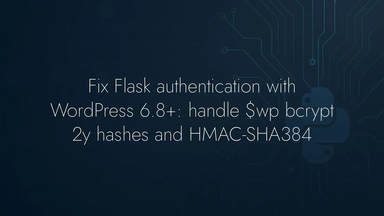 Flask authentication against WordPress 6.8+ can suddenly break after an upgrade. The reason is simple: WordPress changed how it stores password hashes. Where older installs produced $P$-prefixed hashes (phpass), WordPress 6.8+ writes hashes that start with $wp and embed a bcrypt 2y hash. If your Python code directly verified the legacy format, it will reject the new one until you adapt the verifier.