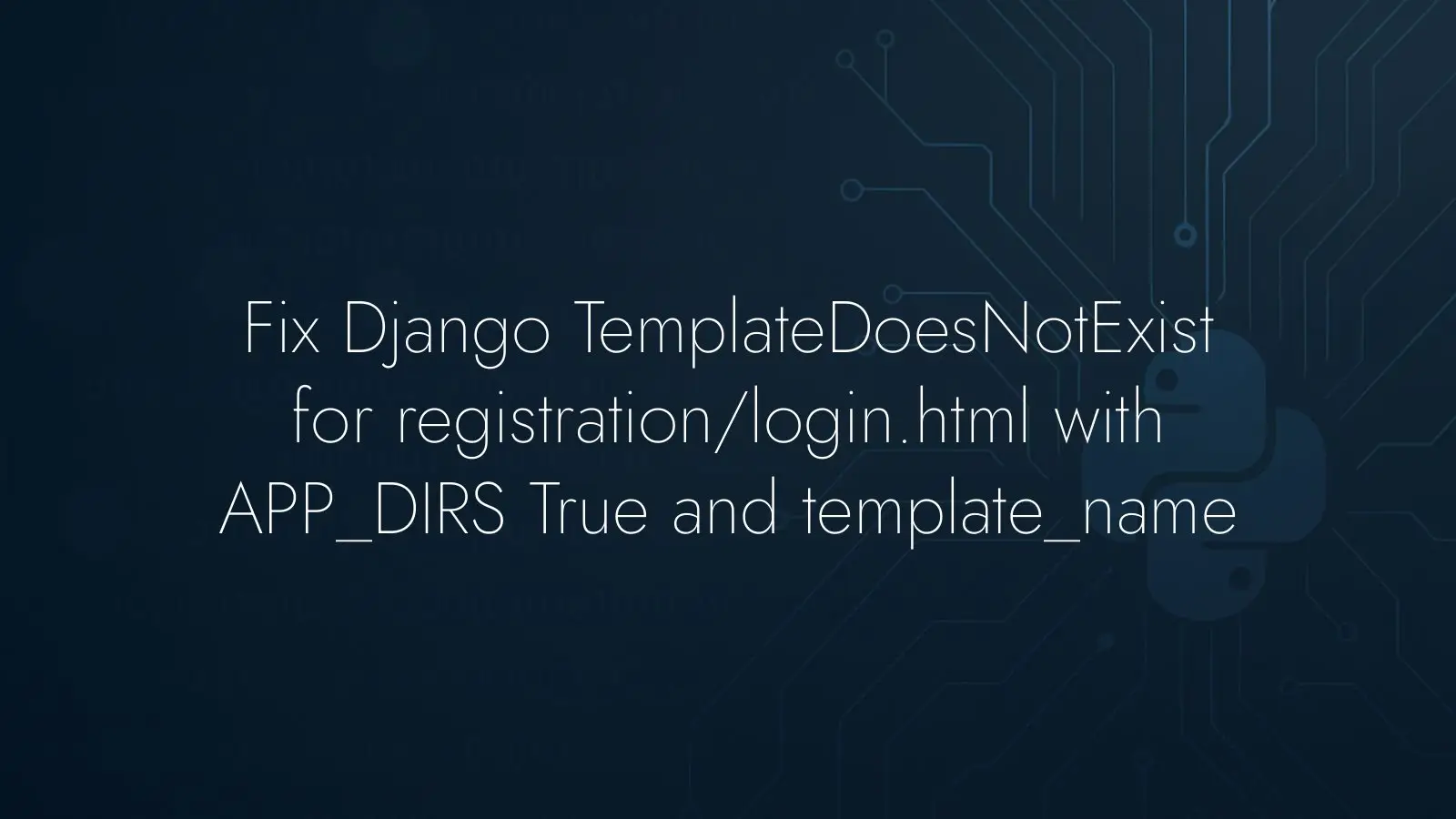 Learn how to fix Django's TemplateDoesNotExist for registration/login.html by enabling APP_DIRS and setting LoginView's template_name. Covers URLconf changes.