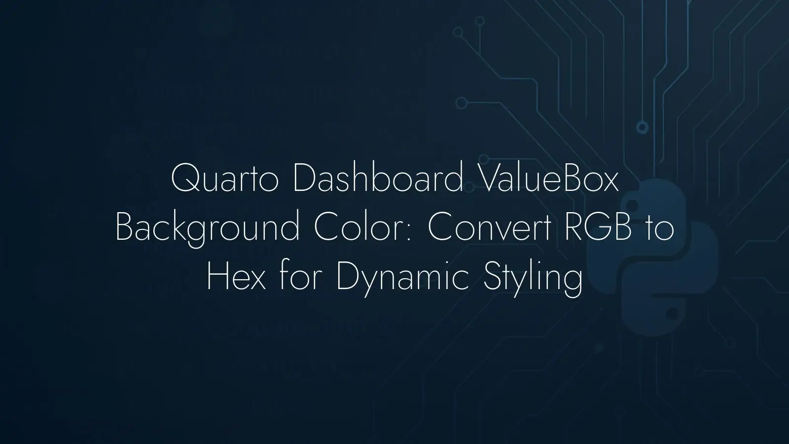 Learn how to set a Quarto ValueBox background color dynamically: convert RGB to hex, avoid CSS strings, and ensure reliable dashboard styling with Python.