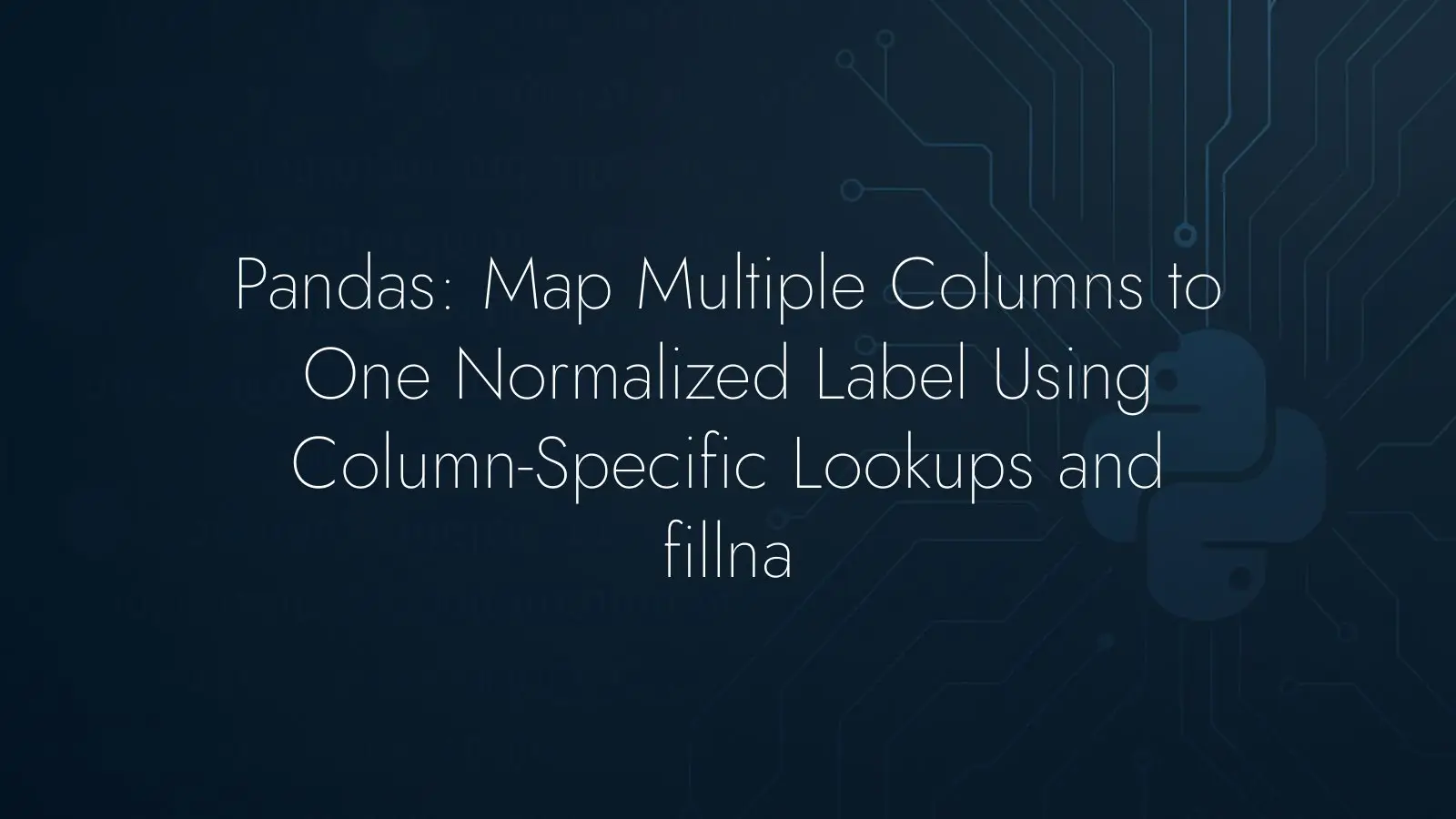 Learn how to map multiple pandas columns to a single normalized label using column-specific lookups, Series.map with fillna or backfill, and ChainMap.