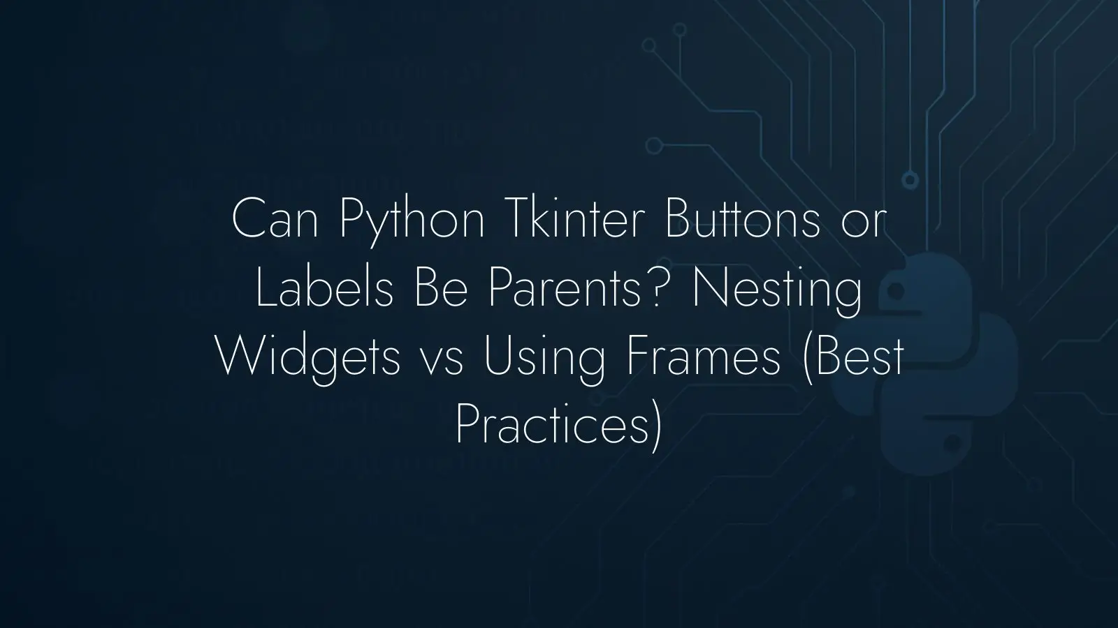 Yes, any Tkinter widget can parent another. No, you generally shouldn’t use Button or other interactive widgets as containers. Prefer proper containers like Frame for structure, keep peer widgets as siblings, and use a Label as a parent only when it serves a clear static role, such as carrying a background image. This keeps interactions clean, avoids cross-platform surprises, and results in a UI that behaves the way users expect.