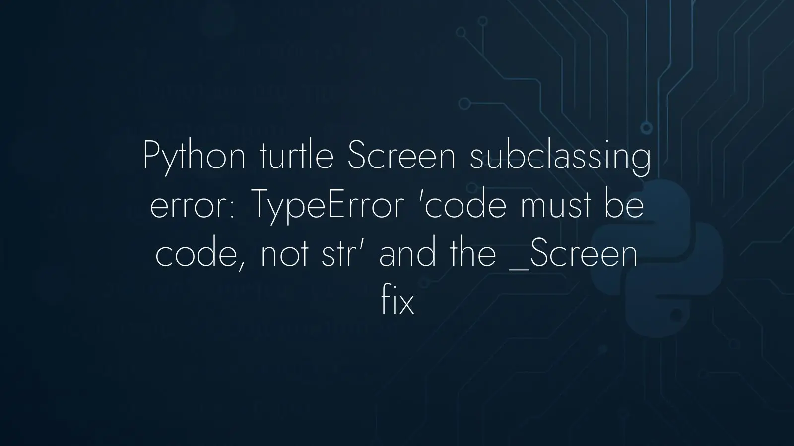 Subclassing turtle.Screen throws “TypeError: function() argument 'code' must be code, not str” — and it’s not about your game logic. The root cause is simpler: in turtle, Screen is not a class you can inherit from. It’s a function that returns an instance of the internal implementation class. If you inherit from a function, Python rightfully complains.