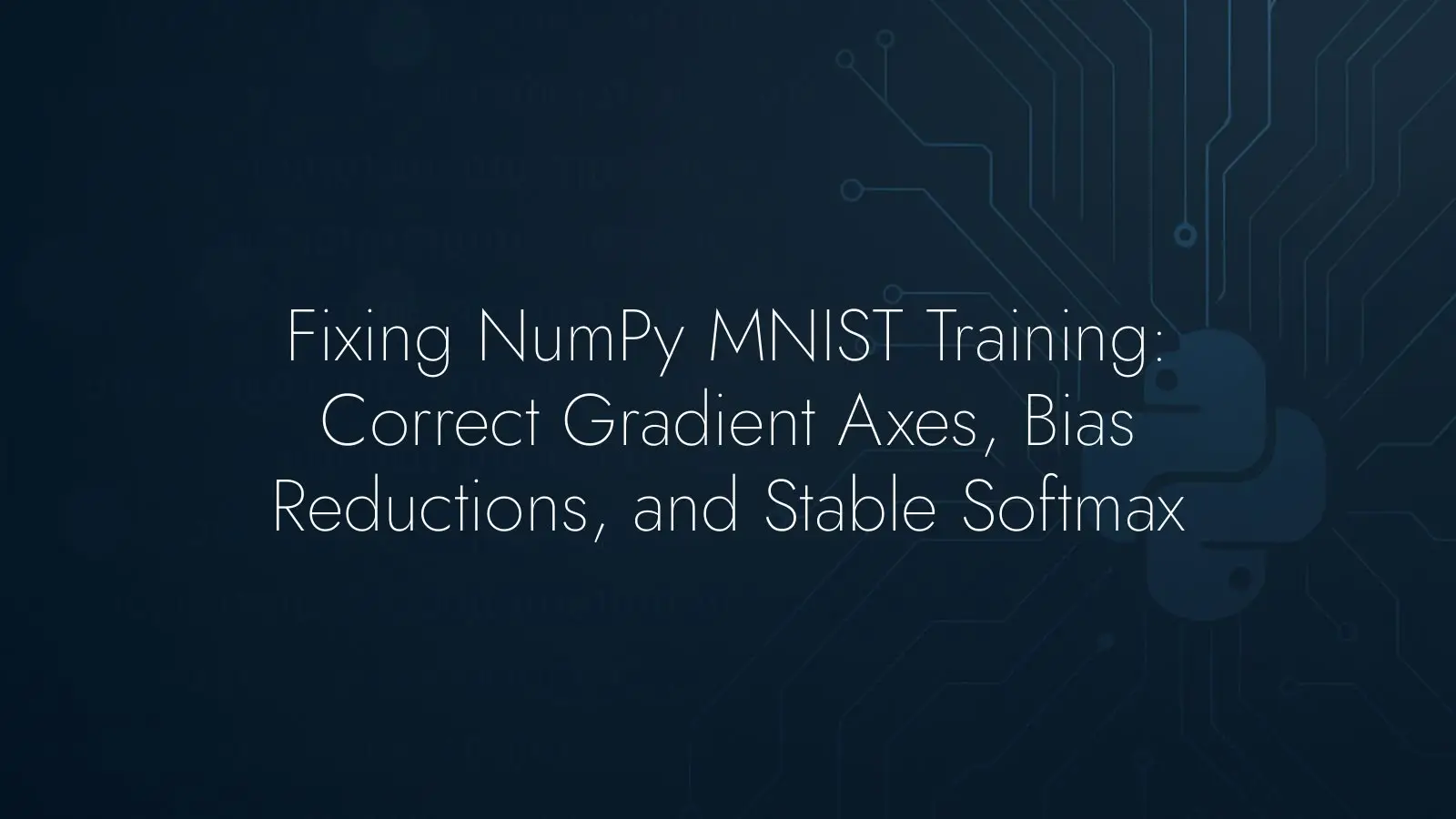 Training a tiny MNIST classifier from scratch in NumPy often fails for a very mundane reason: gradients computed along the wrong axes. The model looks fine, the loss seems to move, but accuracy stubbornly sits near chance. In a two-layer net, a small axis mistake in just one or two places is enough to corrupt every update step. Below is a minimal, reproducible path from the problem to a working fix.