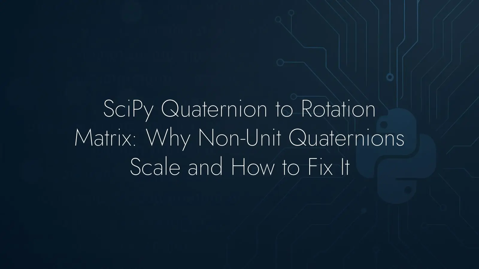 Quaternion-to-matrix conversions in SciPy sometimes surprise people who compare the output to the classic formulas from textbooks or the Wikipedia rotation matrix page. The discrepancy typically shows up when the input quaternion is not unit length. Here is what is actually happening and how to keep your transforms predictable.