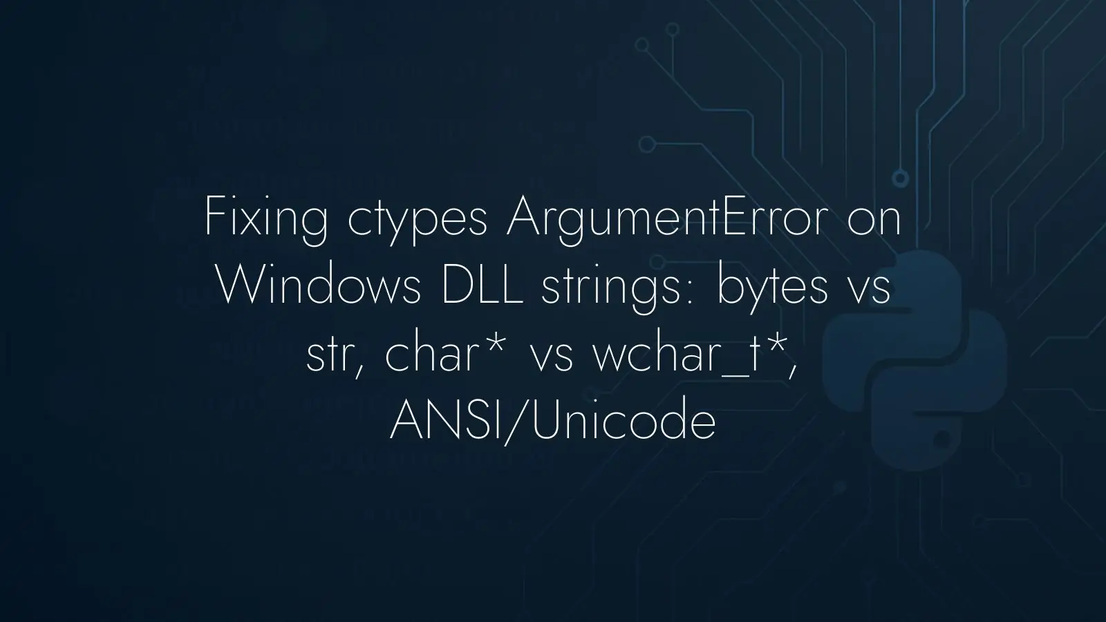 Learn why ctypes raises ArgumentError when passing str to a Windows DLL and how to fix it: bytes vs str, c_char_p vs c_wchar_p, ANSI vs Unicode. Avoid bugs.
