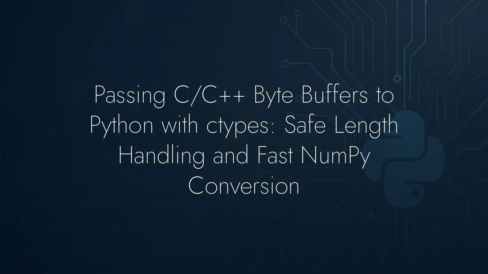 Passing a raw C/C++ byte buffer to Python with ctypes looks simple until you need to handle length and performance. A function returns a uint8_t* with an out-parameter for size, there is no null terminator, and you want a bytes object or a NumPy array without a slow Python loop. The core question is how to safely and efficiently convert that pointer to a usable Python type.