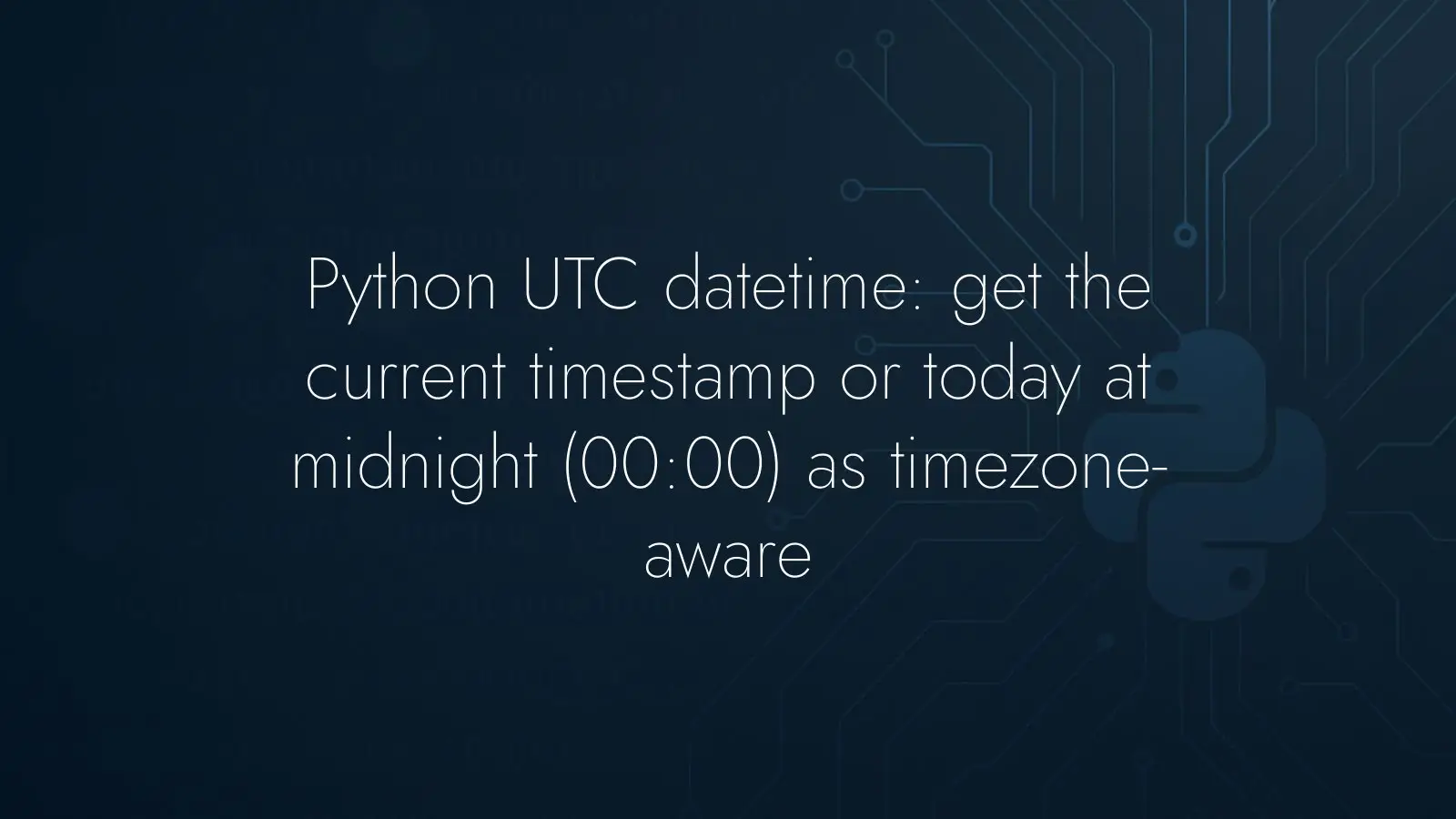 Learn how to get a timezone-aware UTC datetime in Python: either the precise current timestamp or today at 00:00, with examples using the standard library.