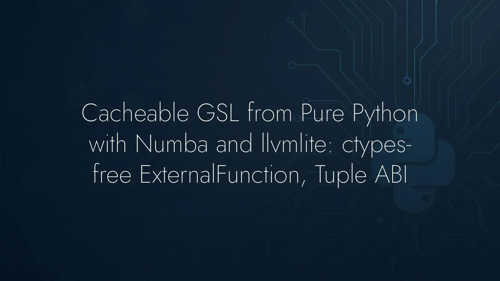 Wrapping GSL from pure Python and keeping Numba’s cacheability usually collide at two points: calling into a shared library without ctypes/cffi, and passing structured state to GSL callbacks without bespoke C glue. Below is a compact path that addresses both. It shows how to call GSL directly with llvmlite and numba.types.ExternalFunction and how to package arguments for gsl_function by lowering a Numba Tuple to the same ABI as a simple C struct.