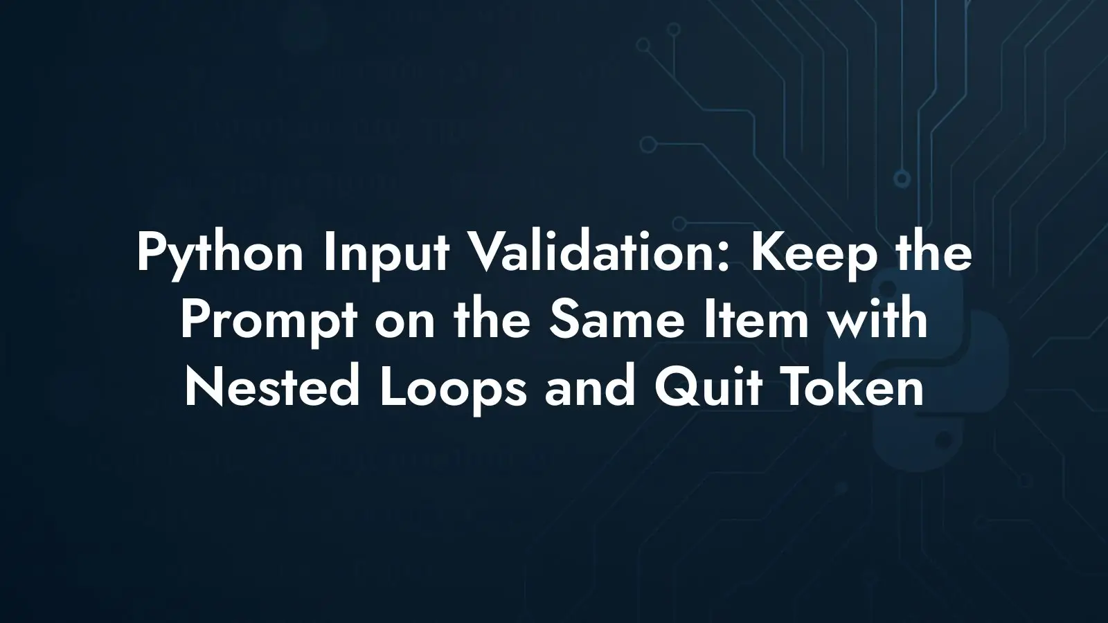 Reliable input validation in interactive scripts is easy to overlook. A common trap appears when a loop advances to the next item after an invalid entry, silently skipping the current one. Below is a concise walkthrough of how to keep the prompt on the same item until a valid value (or an explicit quit) is provided.