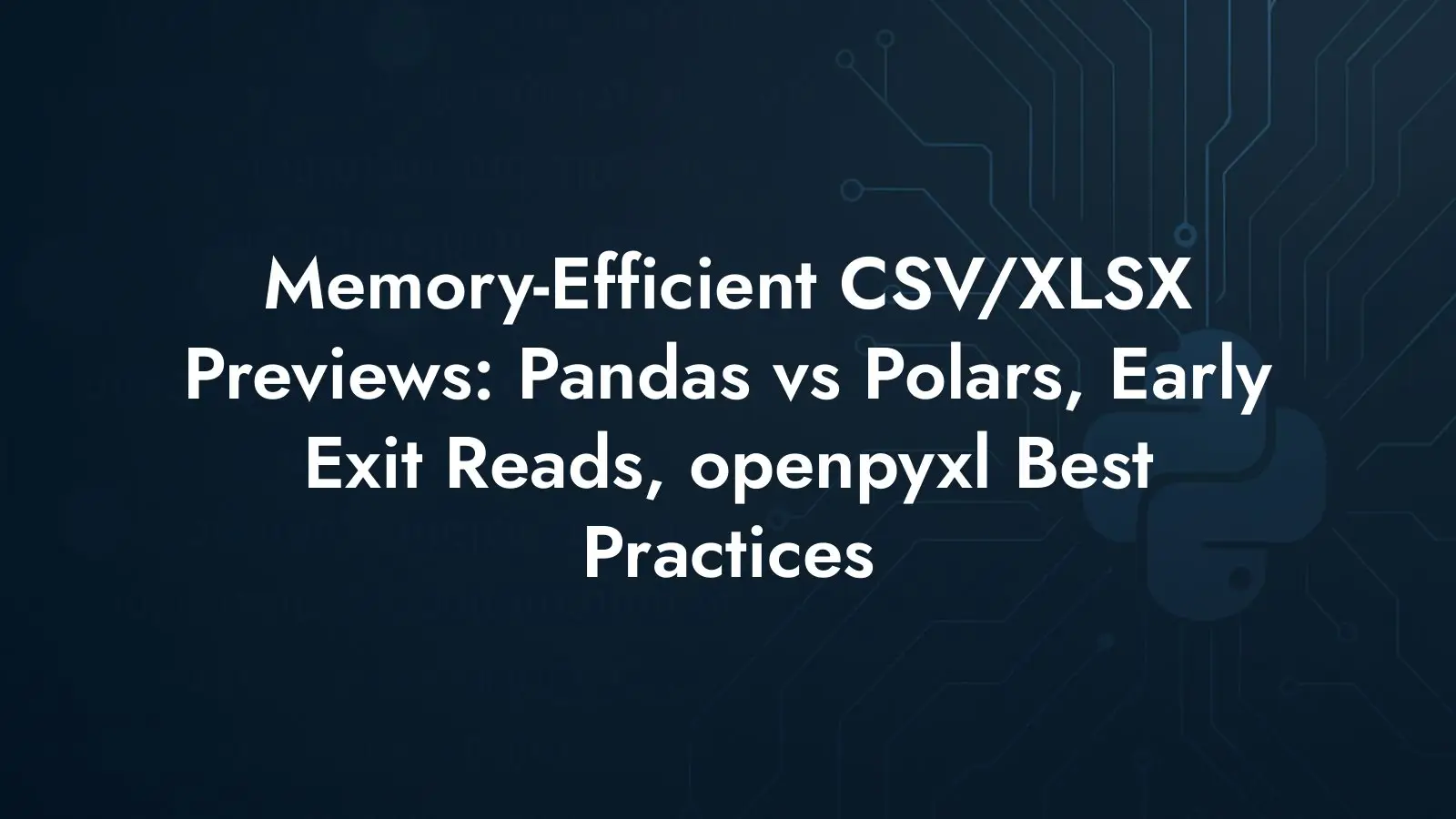 How to Build Memory-Lean CSV and Excel (XLSX) Previews: Pandas vs Polars, openpyxl, Early-Exit Tactics