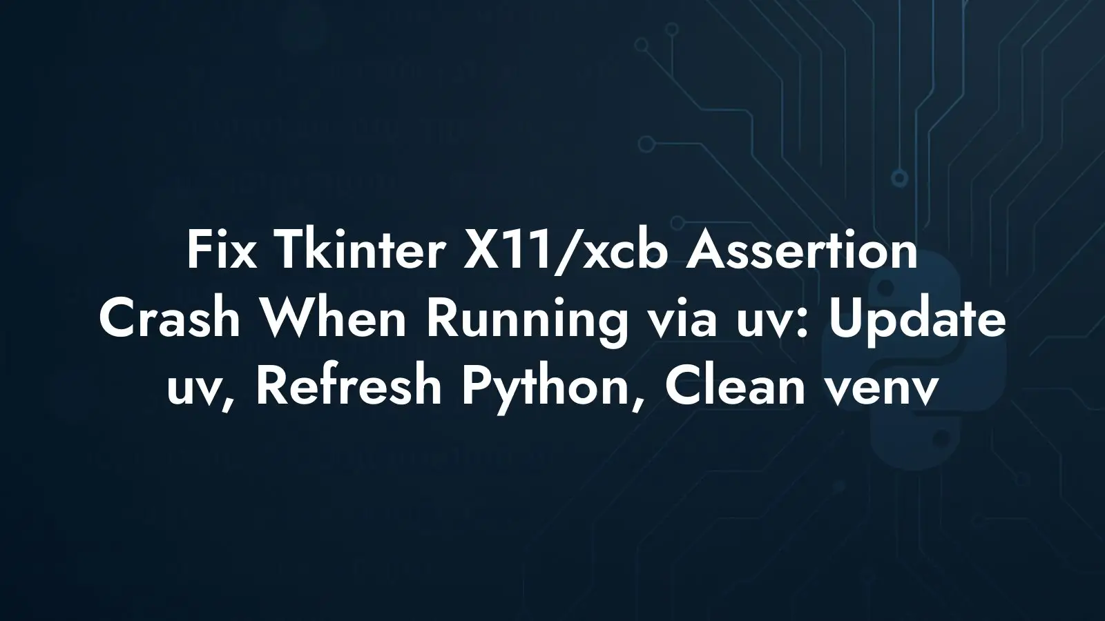 Hit an X11/xcb assertion crash running a simple Tkinter app via uv? It's a known uv bug. Update uv, refresh its Python, remove .venv, and rerun to fix it.