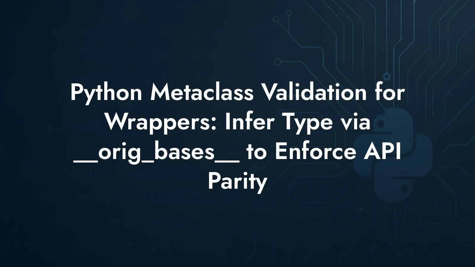 When you build wrapper types around existing classes in Python, it’s common to want two things at once: static typing that tracks which class is being wrapped and a runtime check that enforces parity with the wrapped API. A straightforward approach forces you to specify the same type twice — once as a generic type argument for the type checker and once as a runtime argument for a metaclass that validates implementations. That duplication is noisy and fragile. The goal is to declare the type once and let the runtime logic infer it.