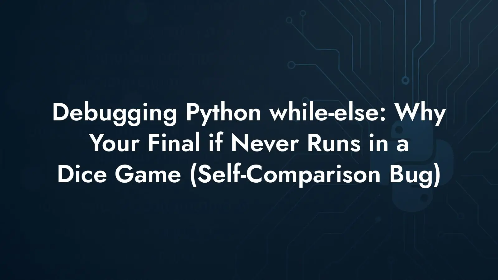 You build a two‑player dice rolling game, loop over a chosen number of rounds, and then decide the winner. Everything runs, but the final if block after the while never prints the expected result. The suspicion falls on the while–else. In reality, the issue is simpler: a self‑comparison in the final condition that can never be true.