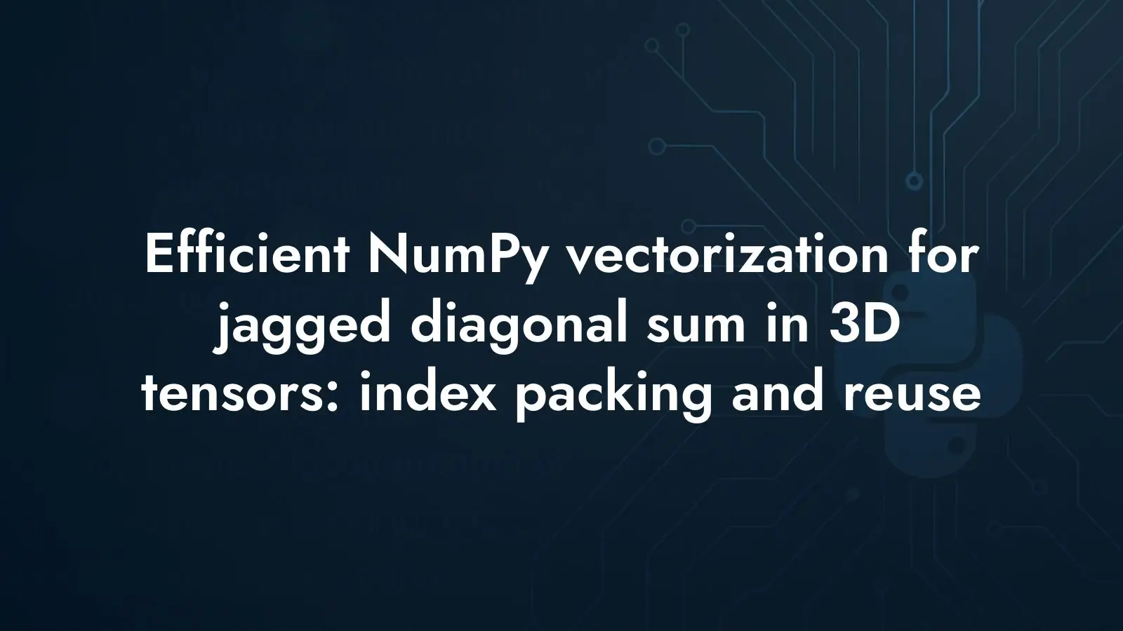 Summing a jagged diagonal across a 3D array sounds trivial until you try to vectorise it. Given a cubic tensor a with shape N×N×N, the goal is to compute b such that b[i, j] = Σ_k a[i+k, j+k, k]. A straightforward pair of loops with an einsum-based inner computation works, but it is slow. Below is a practical way to compute this efficiently in NumPy, and a path to make it even faster when you need to run it many times with the same shape and dtype.
