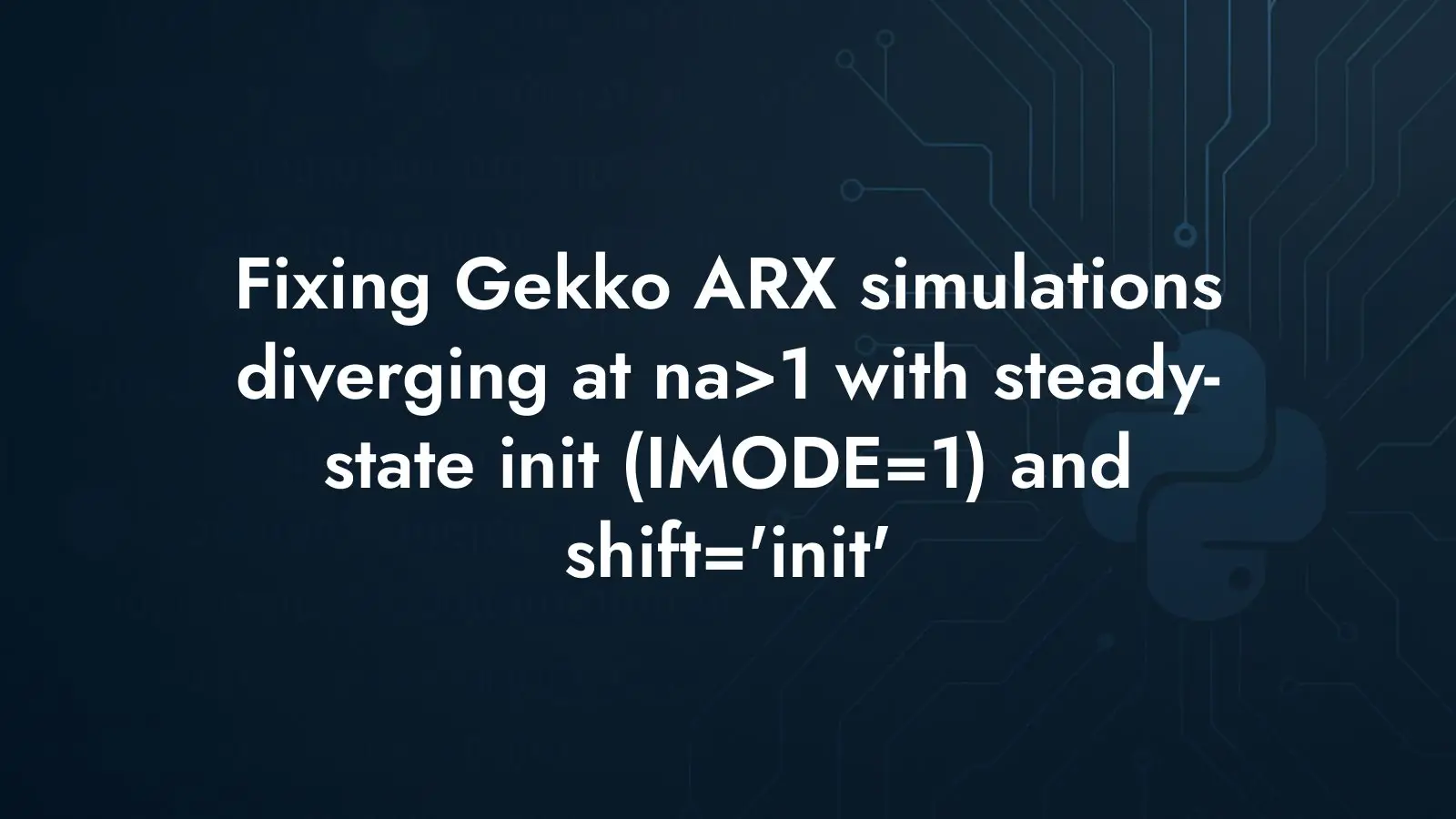 Learn why Gekko ARX simulations diverge when na>1 and how to fix them using steady-state initialization (IMODE=1) and sysid shift='init' for stable dynamic runs.
